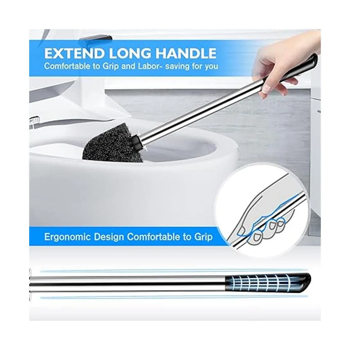 IXO Cepillo de inodoro y soporte para inodoro, 2 unidades, cepillo de inodoro de acero inoxidable 304 con mango de cepillo cómodo extendido y duradero, cepillo de inodoro para inodoro de baño, ergonómico, práctico duradero