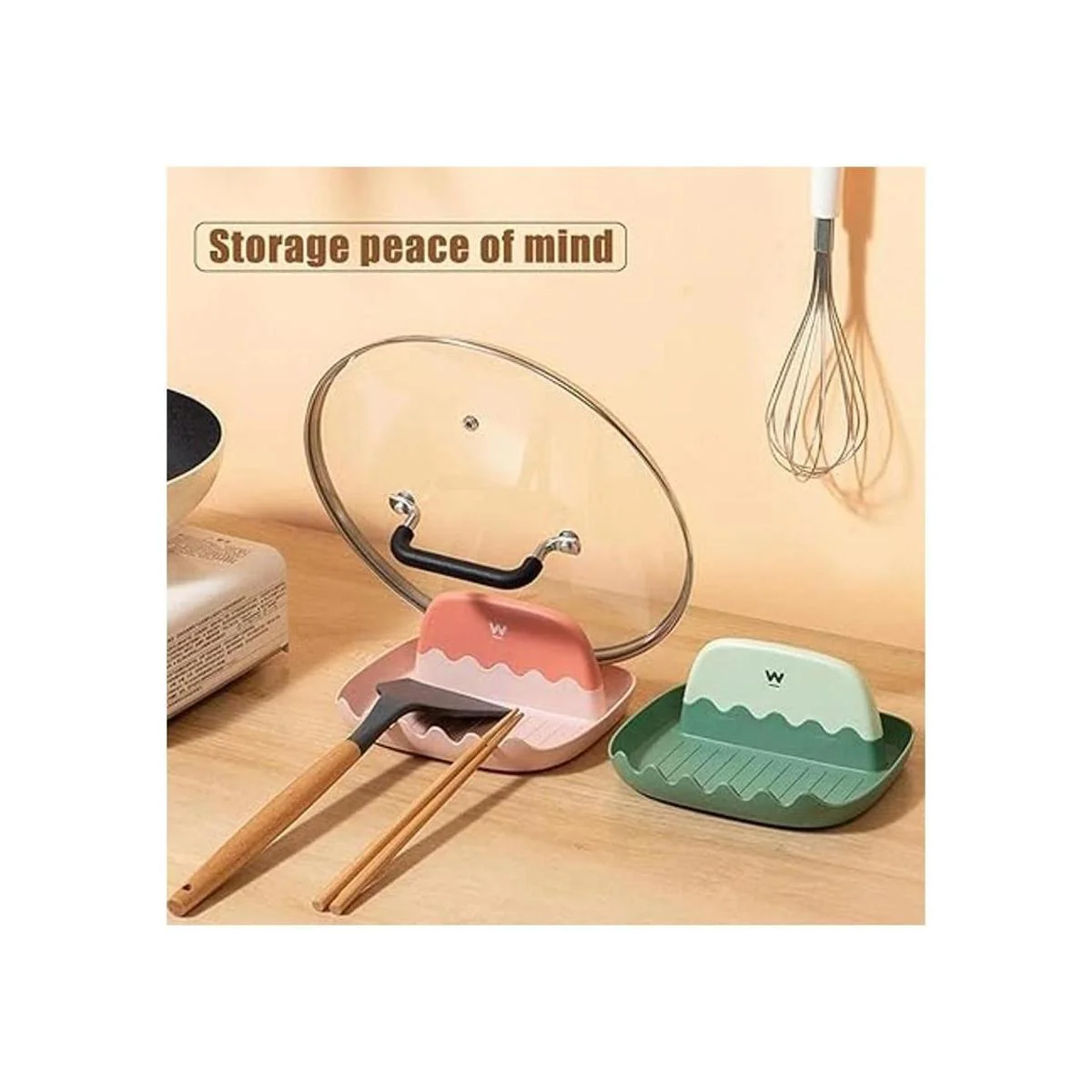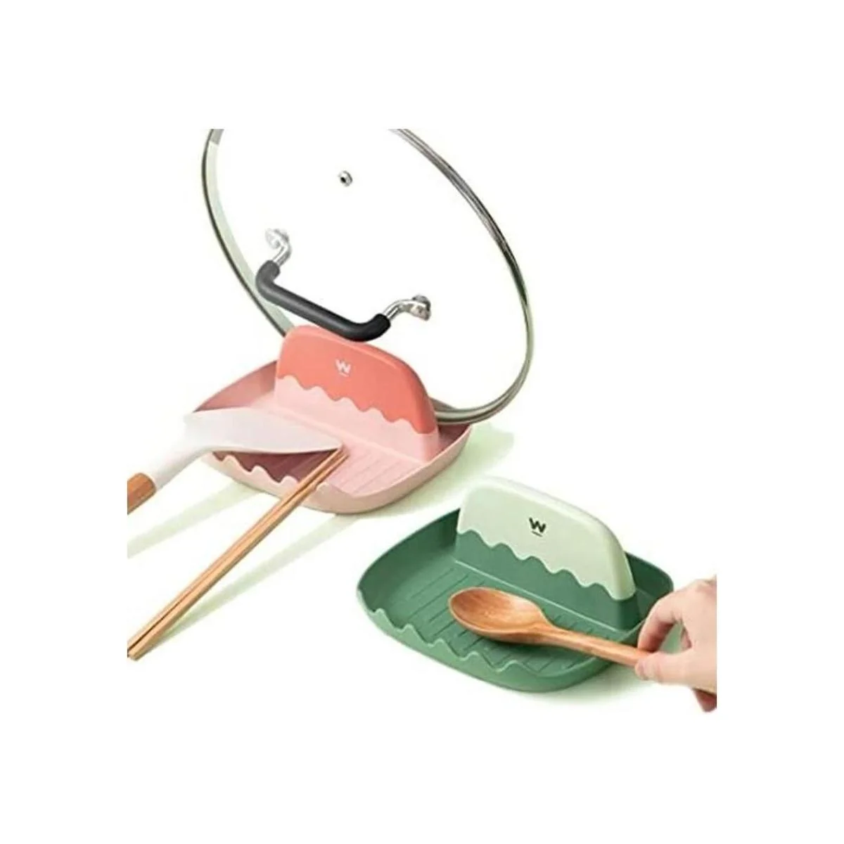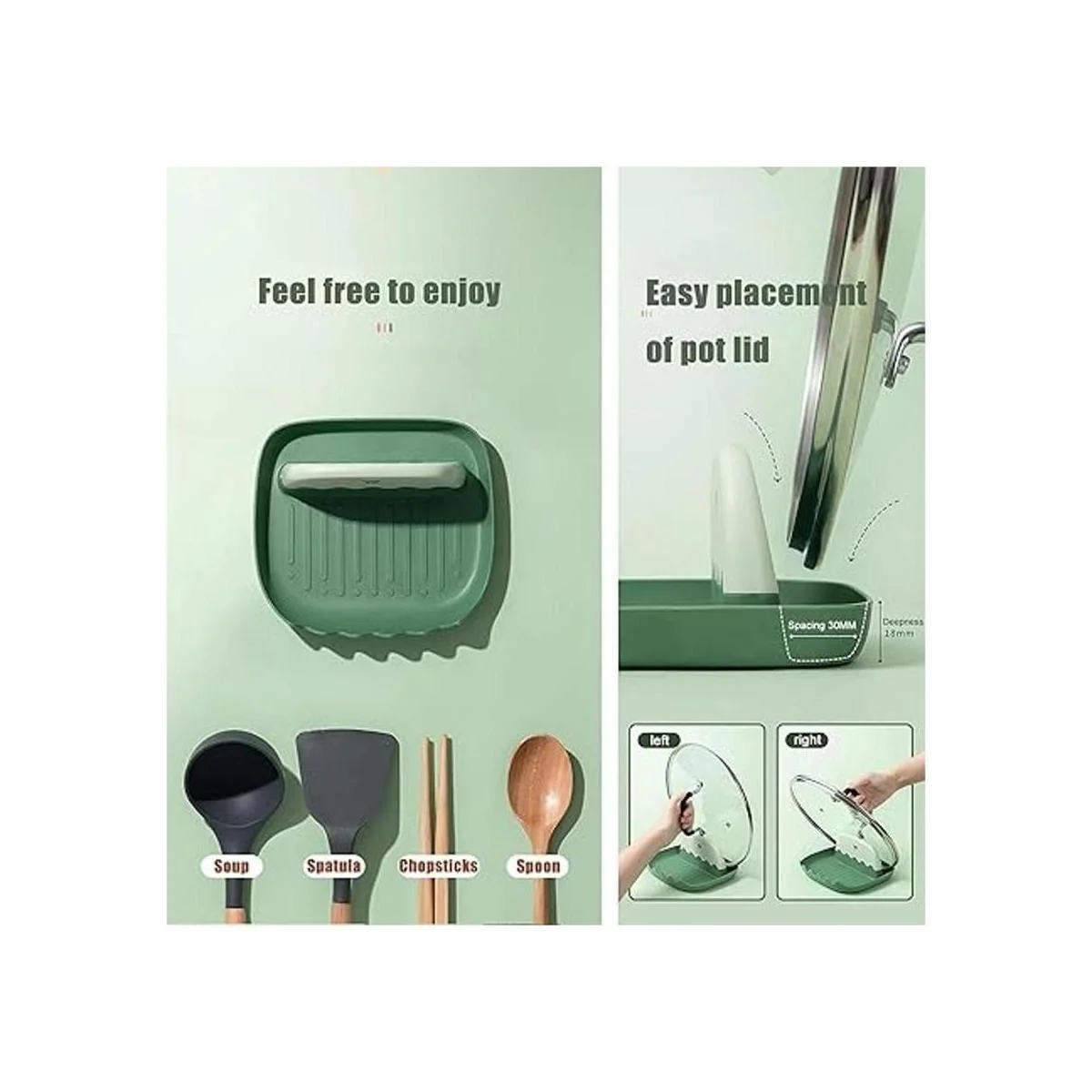 Múltiples utensilios y soporte para tapas: el soporte para cuchara y tapa es un soporte multifunción para espátulas de cocina para encimera, soporte para utensilios y soporte para tapa de olla, ranuras más grandes para adaptarse a más utensilios, parte inferior más larga para sostener cucharón, borde más alto para sostener la tapa de olla más grande.