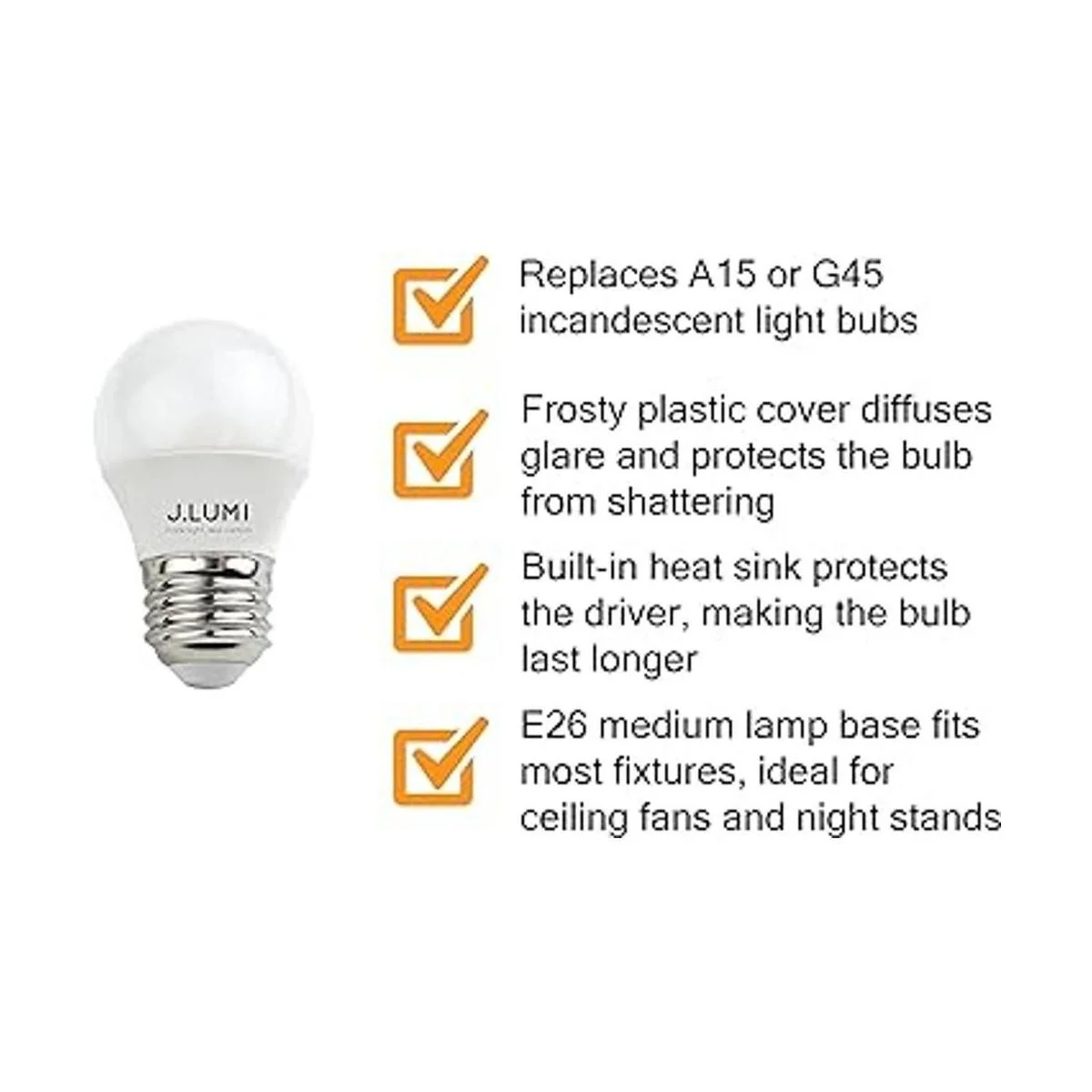 J.LUMI Bombilla LED A15, bombillas de 5 W, bombillas pequeñas de 1.772 in de diámetro, base media E26, blanco suave de 3000 K, bombilla de campana extractora, bombilla de refrigerador de 40 W, bombillas de tocador, no regulables paquete de 4