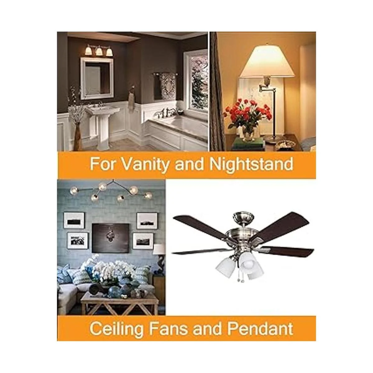Bombillas de ventilador de celda: para una variedad de uso doméstico como bombillas de ventilador de techo, para iluminación de campana, bombillas de tocador, refrigeradores, lámparas de mesa, luces colgantes de techo. La base de lámpara mediana E26 se adapta a la mayoría de las lámparas.