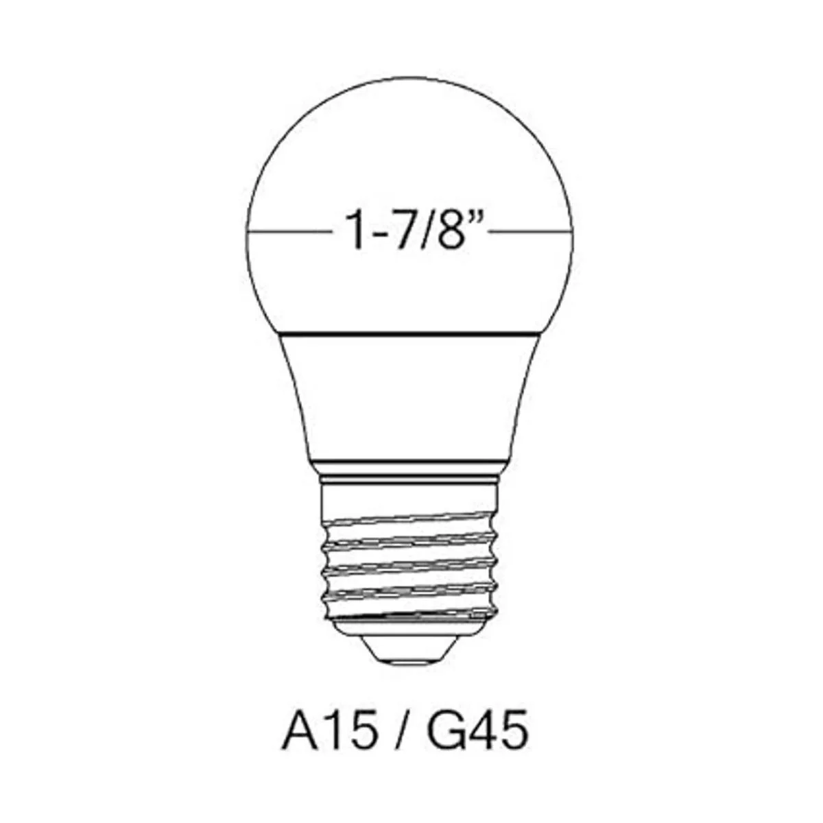 Tamaño de bombilla pequeña: tamaño de bombilla compacto y pequeño. Bombilla A15 y forma de bombilla G45. Estas bombillas de 1.772 in de diámetro son mucho más pequeñas en comparación con las bombillas Edison A19 estándar 2.362 in de diámetro.