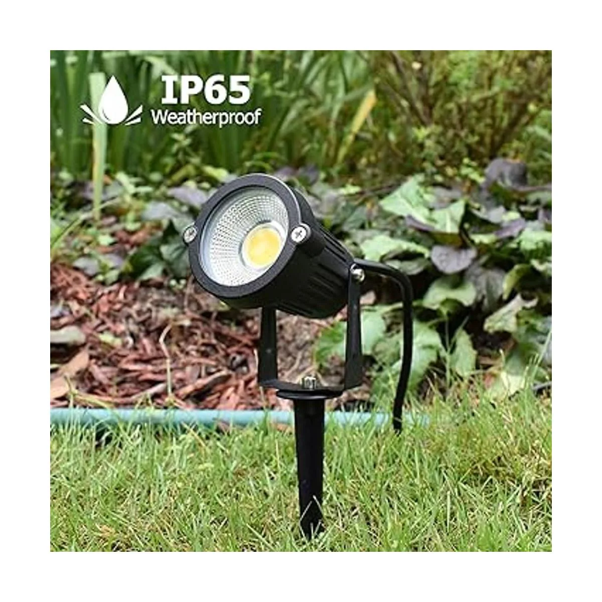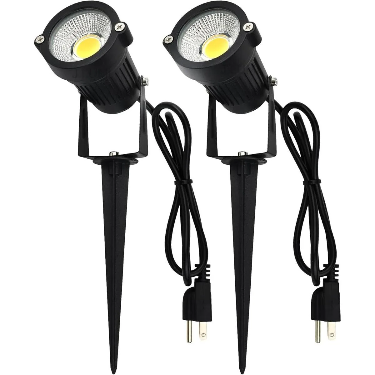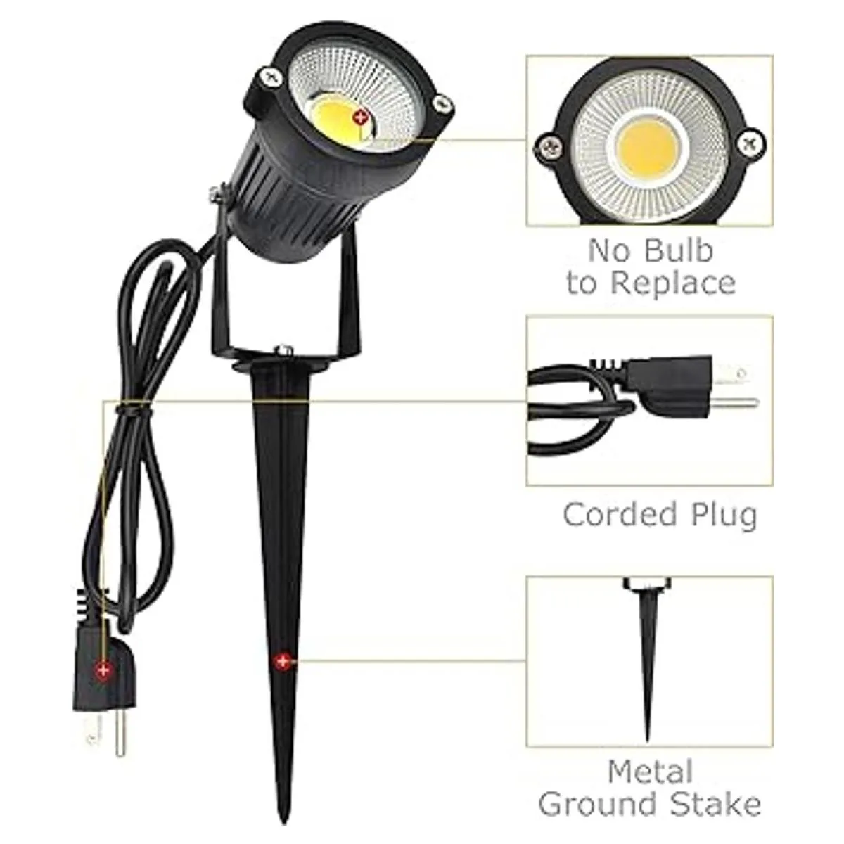 J.LUMI foto de luz LED para exteriores con estaca para el suelo de metal, con cable con certificación UL, 5 vatios, 110120 voltios, 3 000 K, luz de color blanco cálido, Negro
