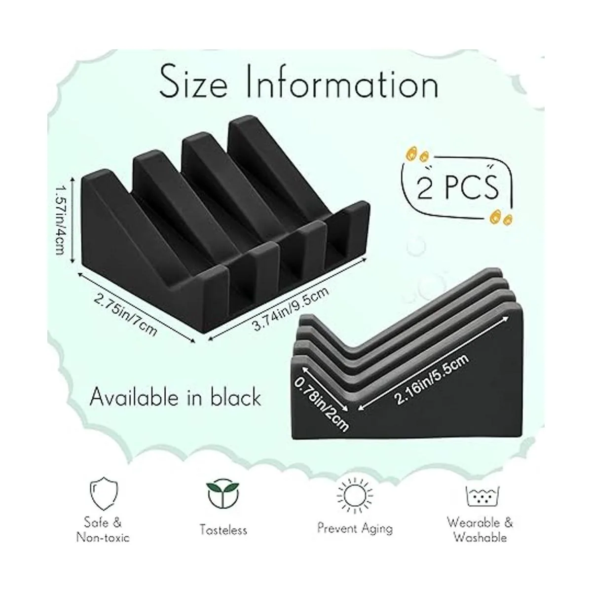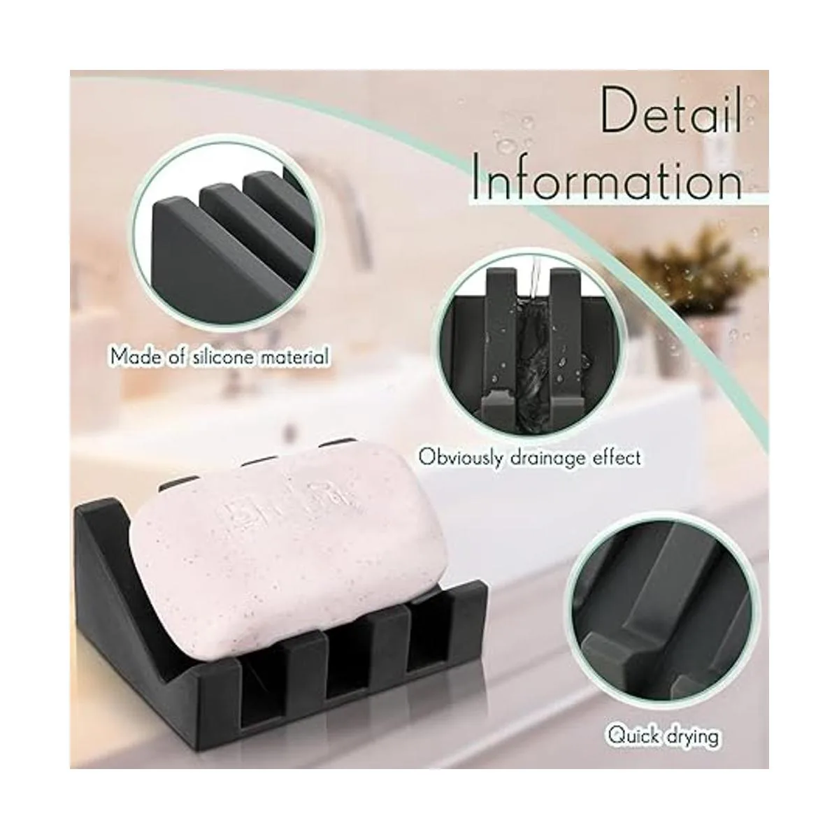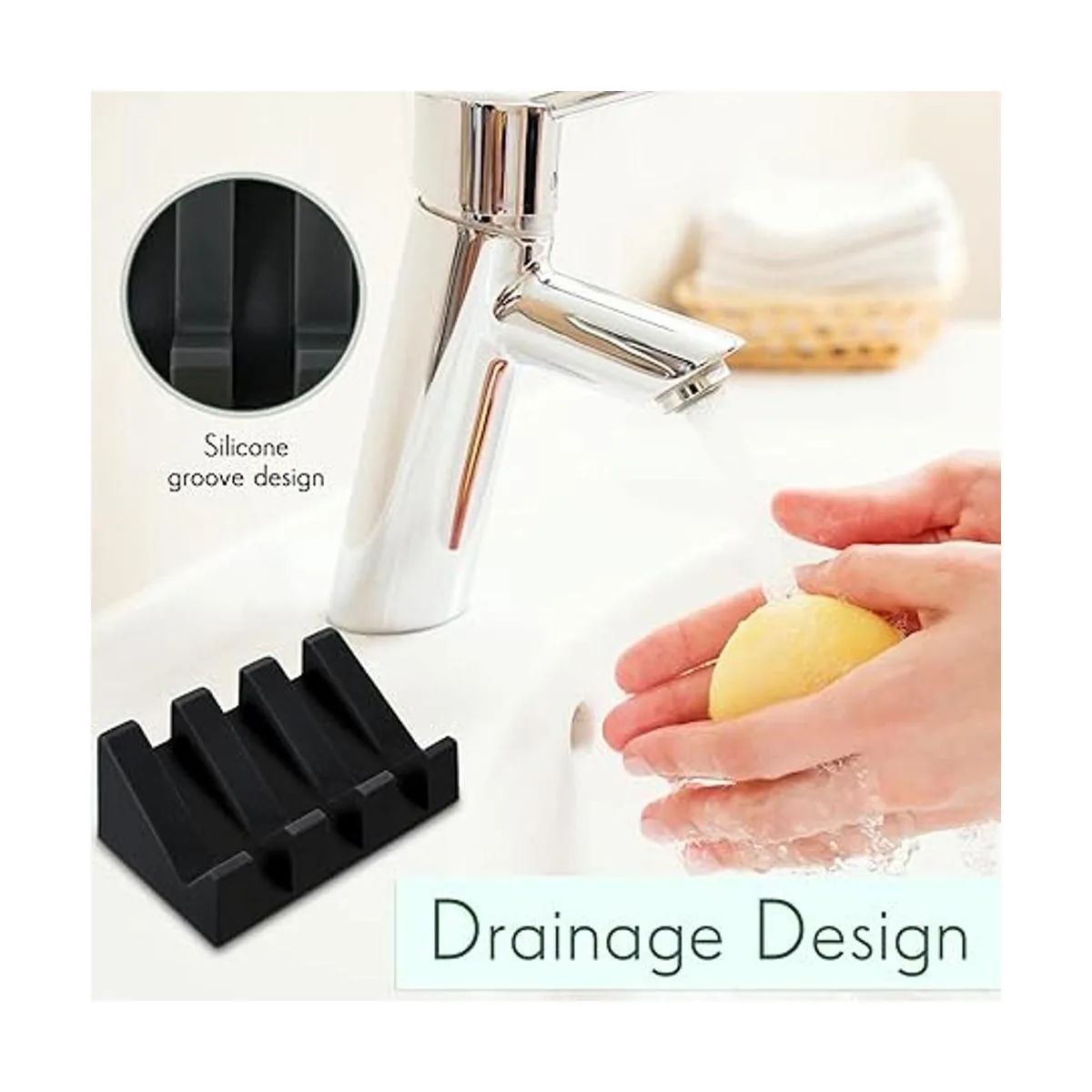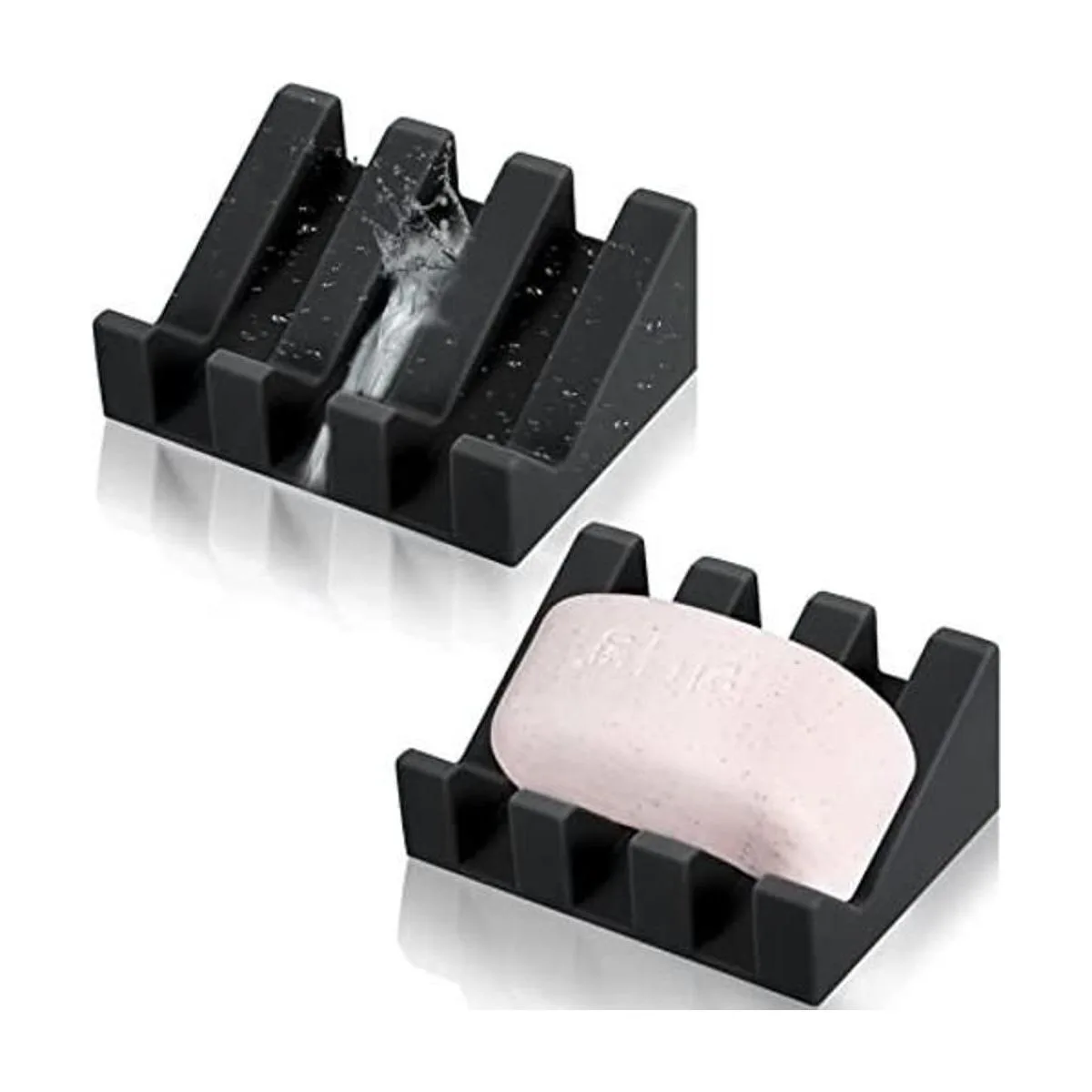 Jabonera de silicona autodesagante para ducha, barra de cascada, bandeja de jabón con protector de jabón de drenaje para accesorios de cocina y baño negro, 2