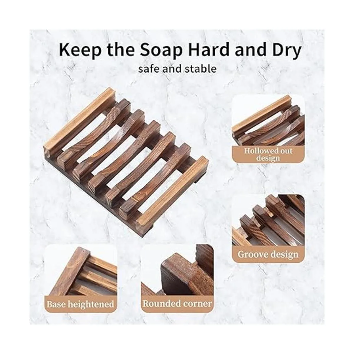 Mantiene el jabón duro: tiras de madera huecas y base elevada, los protectores de jabón para jabón de barra crean una ventilación de 360 grados y ventaja de autodrenante que evita eficazmente que el jabón se ablande. La espuma será más abundante cuando se utiliza tu jabón, lo que puede traer una mejor experiencia a tu vida.