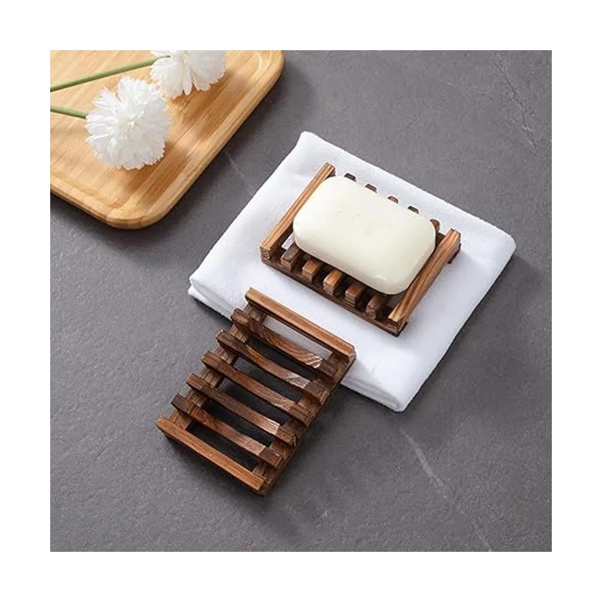 Hecho a mano: artesanía natural a mano, cada jabonera rectangular de madera para ducha es única, color carbón perfecto, las jaboneras para jabón de barra miden 4.33 x 3.15 x 0.82 pulgadas, ligera y compacta, la jabonera es buena para viajes y familia.