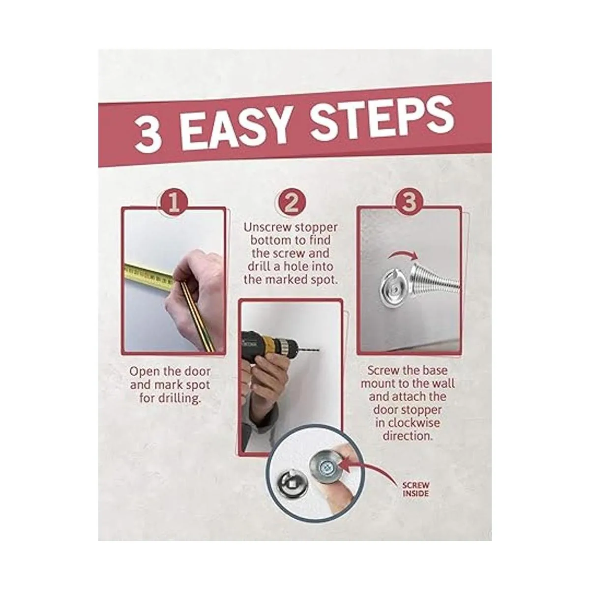 Fácil de montar. Hicimos que la instalación sea tan fácil como un pastel. Primero, marca la colocación. Taladra un agujero. Monta la base del tapón en la pared y luego inserta el resorte en la base. Y listo, está listo para la acción