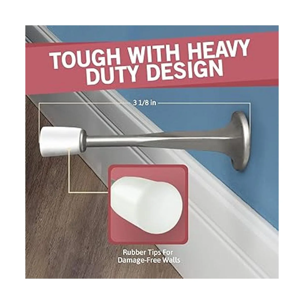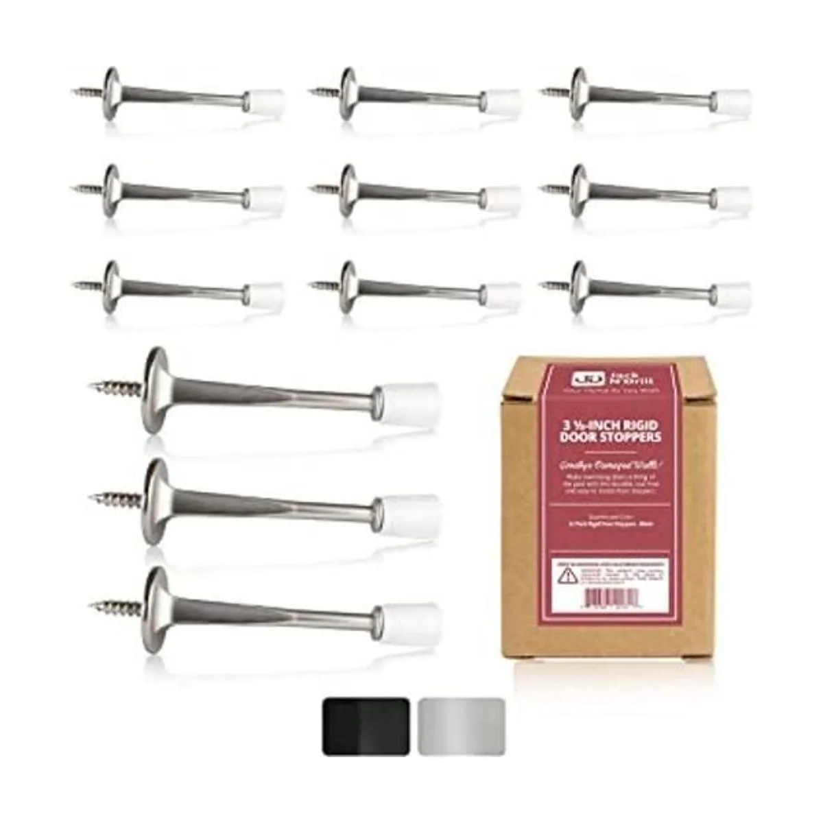 Jack N’Drill Tope rígido para puerta (3 pulgadas) (12 unidades) – Tope de puerta sólido de níquel satinado inoxidable con puntas de goma duraderas | Protege paredes y puertas de daños | Ideal para oficina y hogar