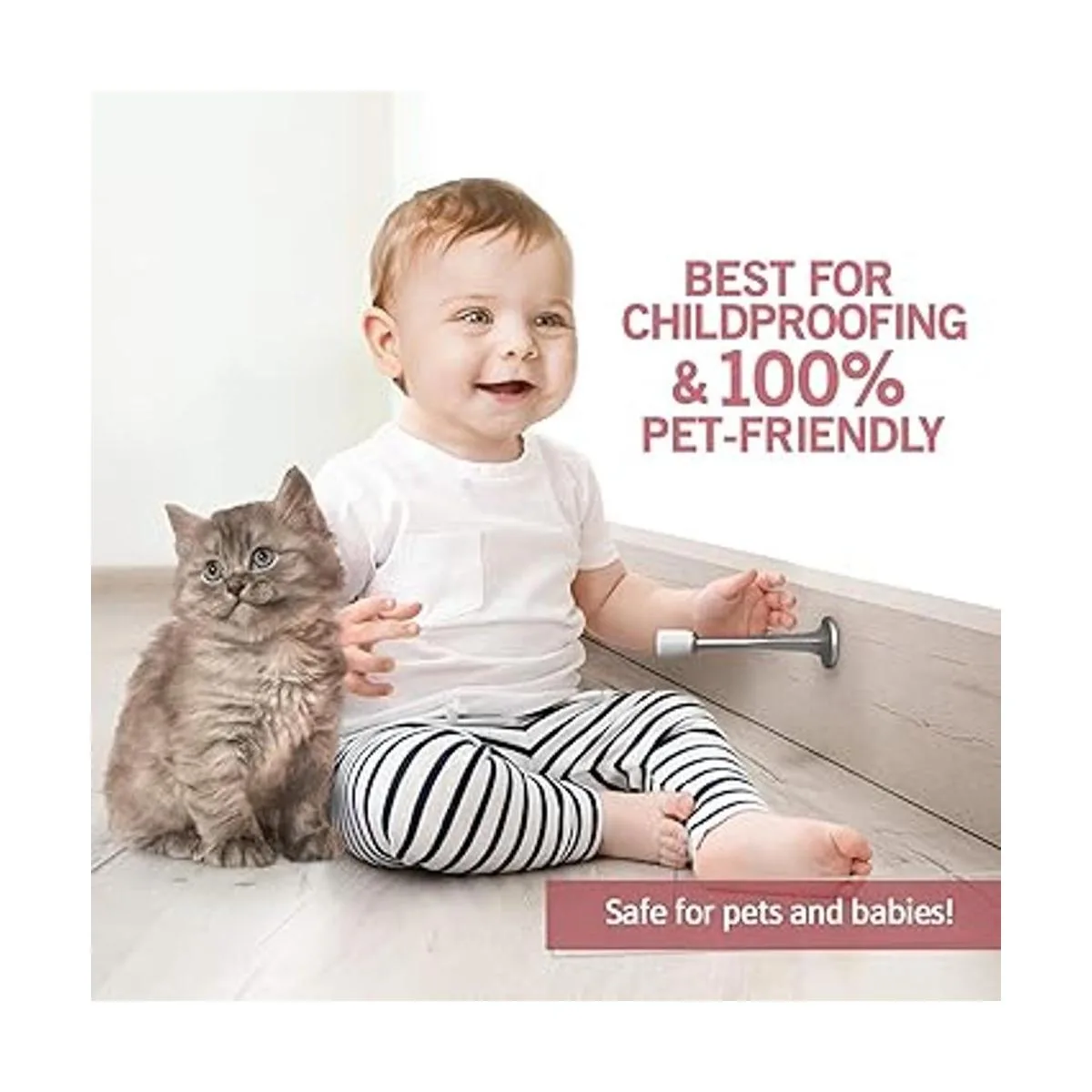Seguro para niños y mascotas. Estos topes de puerta Jack nDrill están equipados con una punta de goma asegurada con pegamento de alta viscosidad. El pegamento ayuda a mantener todo en su lugar para que no se salgan fácilmente.