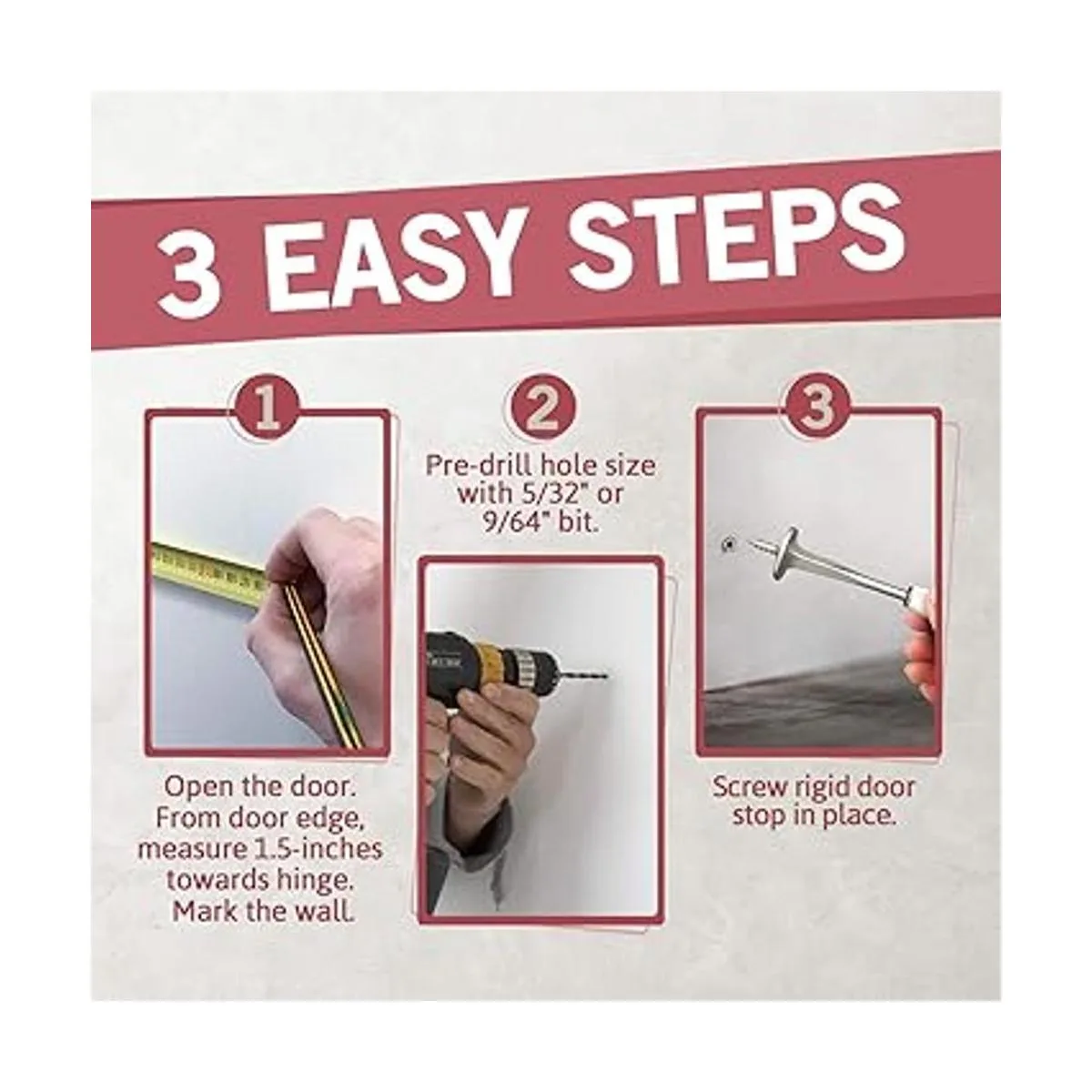 Instalación muy fácil. Tienes un taladro Entonces estás listo para instalar tus topes de puerta Jack NDrill Simplemente marca el lugar, saca los tornillos, coloca el tope de la puerta y listo.