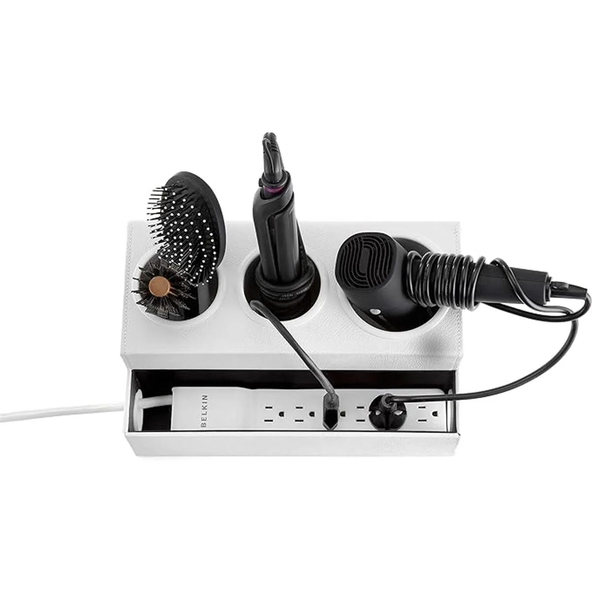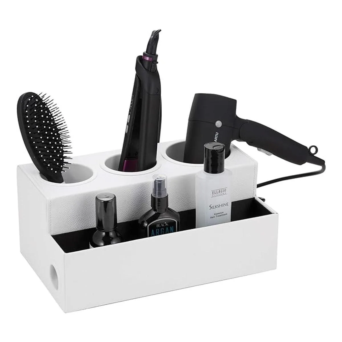JACKCUBE Soporte para secador de pelo, organizador de herramientas de cuidado de productos para el cuidado del cabello, accesorios de baño, bandeja de almacenamiento, tocador de baño, encimera con 3 agujeros blanco MK154D