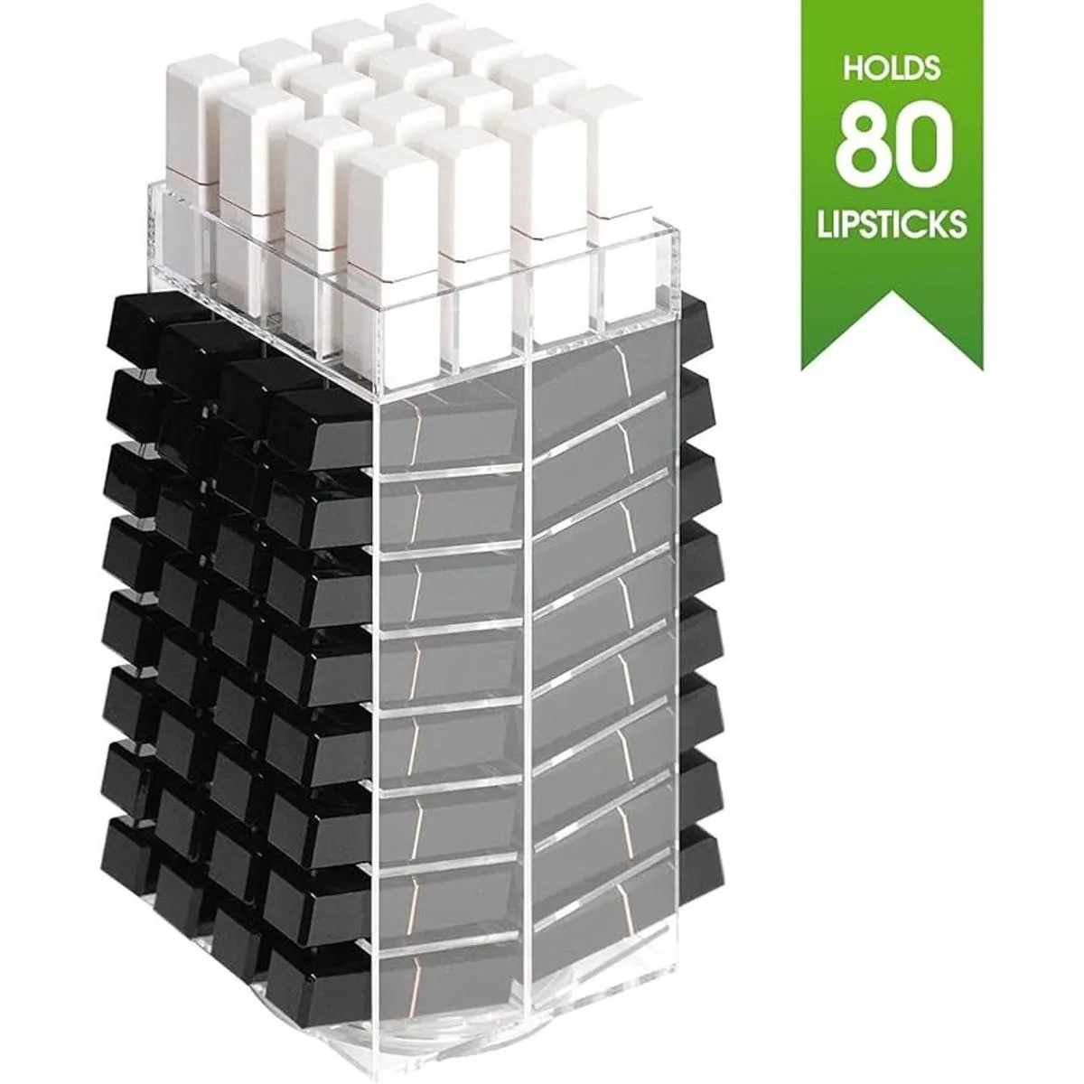 JackCubeDesign MK391A Torre giratoria de pintalabios acrílico con 80 compartimentos transparente