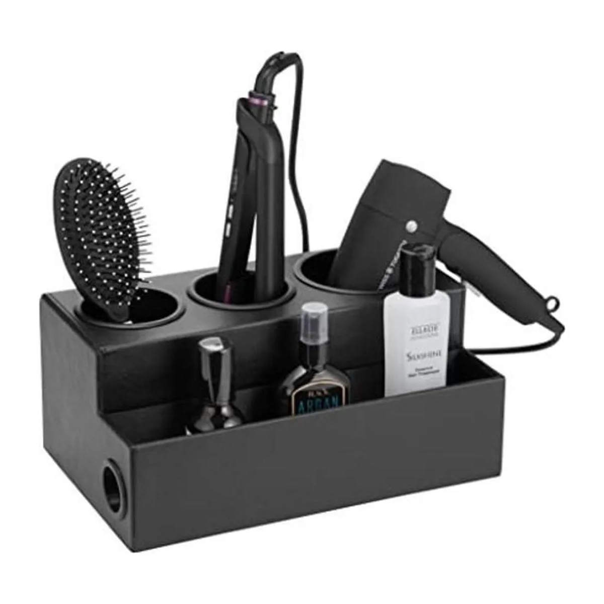 JackCubeDesign Soporte para secador de pelo, organizador de herramientas de cuidado de productos de cuidado del cabello, accesorios de baño, bandeja de almacenamiento, encimera de tocador de baño con 3 agujeros negro MK154C