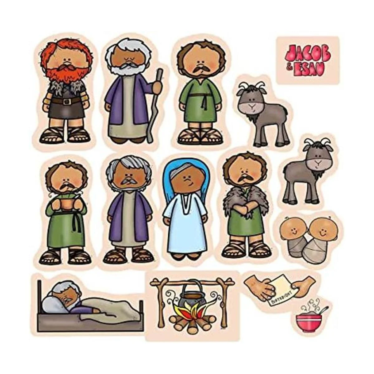 Jacob Esau Figuras de fieltro para la Biblia de franela, 15 figuras precortadas, páginas de actividades
