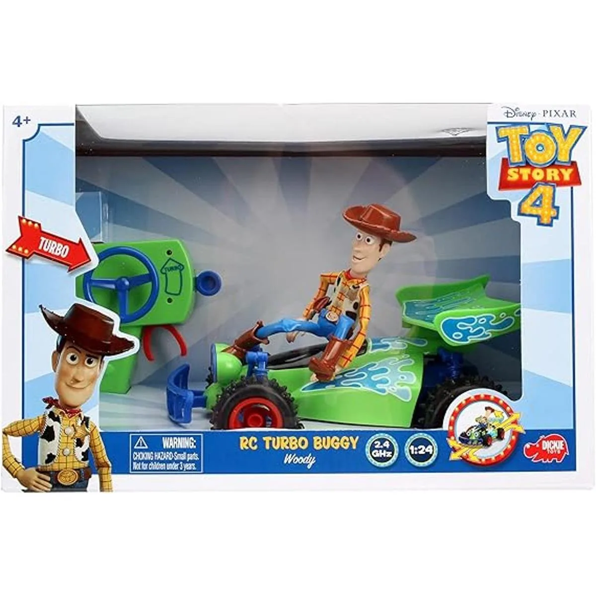 Jada Disney Pixar Toy Story 4 Turbo Buggy con vehículo de control de radio Woody, 2.4 Ghz, 1 24