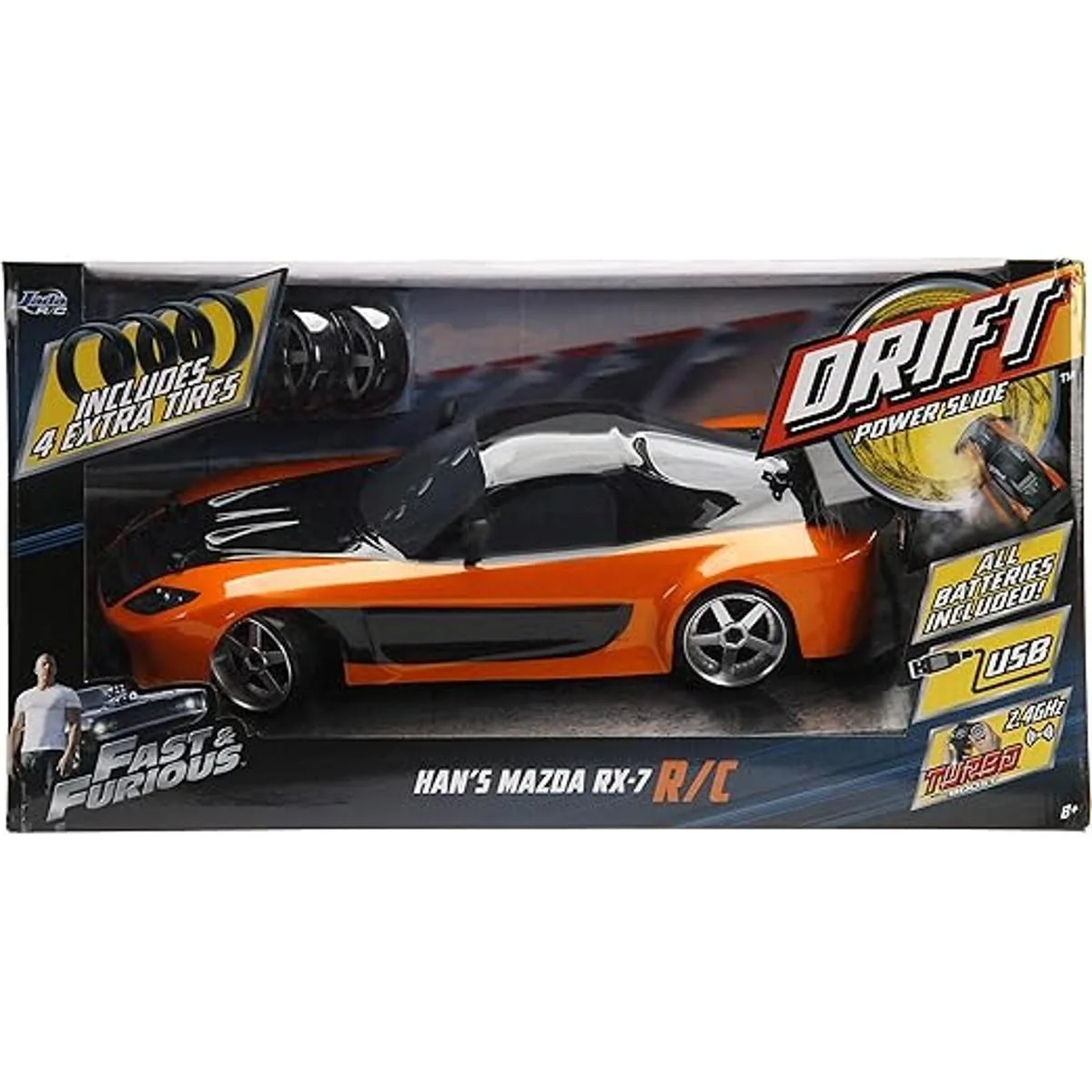 Jada Toys Fast Furious Hans Mazda RX7 Drift RC Coche 1 10 escala 2.4 GHz Control remoto naranja y negro, listo para funcionar, carga USB estándar 99700
