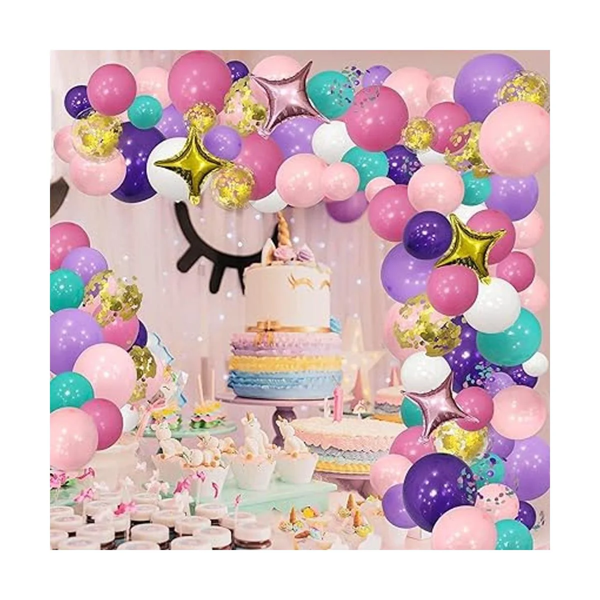 JANEF Juego de 151 guirnaldas de globos de sirena de unicornio, globos de látex de confeti con 7 herramientas de globo, para fiesta de cumpleaños, ducha, suministros de boda
