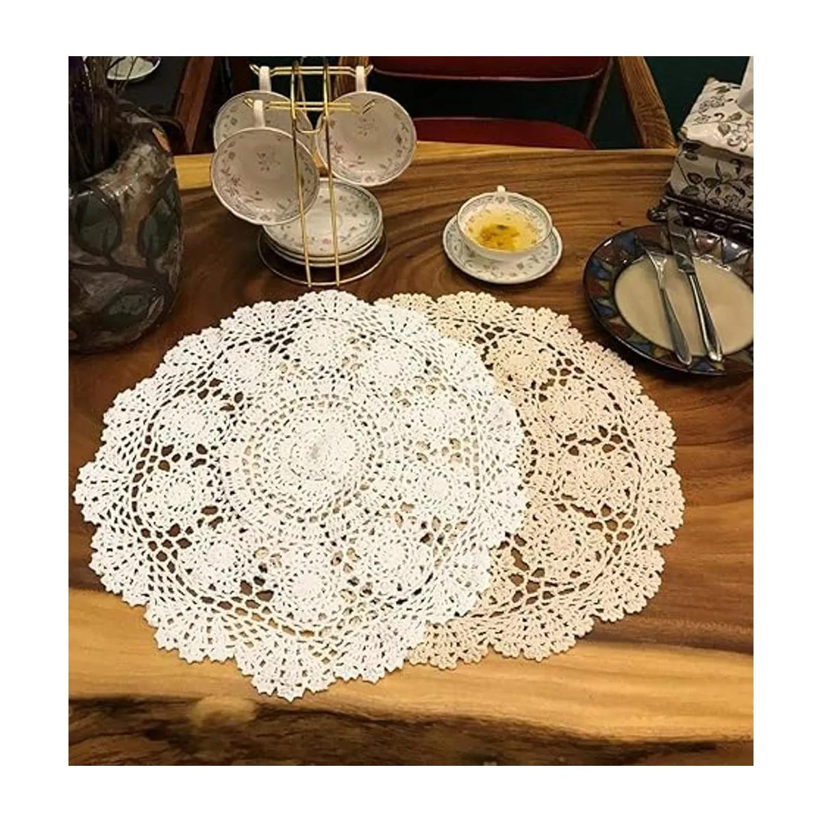 Janef Mantel de algodón hecho a mano blanco de ganchillo de encaje de 15,7 pulgadas 2 unidades