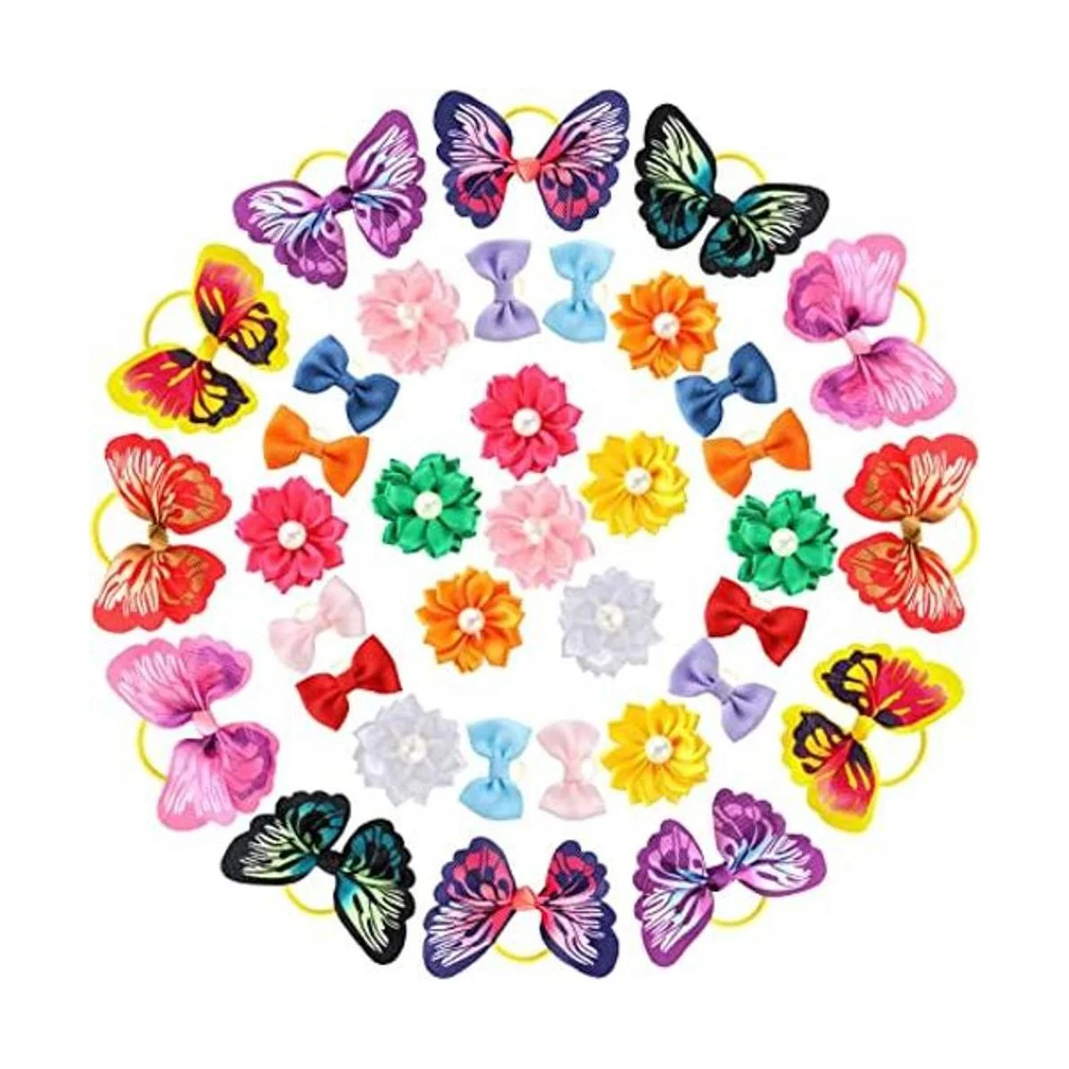 Janinka 36 lazos para el pelo de perro, perlas de flores, lazos para el pelo de perro, lazos para el pelo de perro, lazos para el pelo de mascotas con bandas de goma, lazos para el pelo de mascotas para cachorros, perros, gatos, accesorios para el pelo