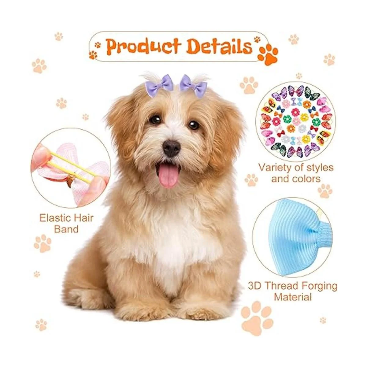 Ligeros y fiables: los lazos de aseo para mascotas están hechos de tela con colores brillantes, no se decoloran ni se deshilachan fácilmente; la banda de goma tiene buena elasticidad, es resistente y difícil de romper, no tirará del pelo peludo de tu perro, se puede aplicar durante mucho tiempo
