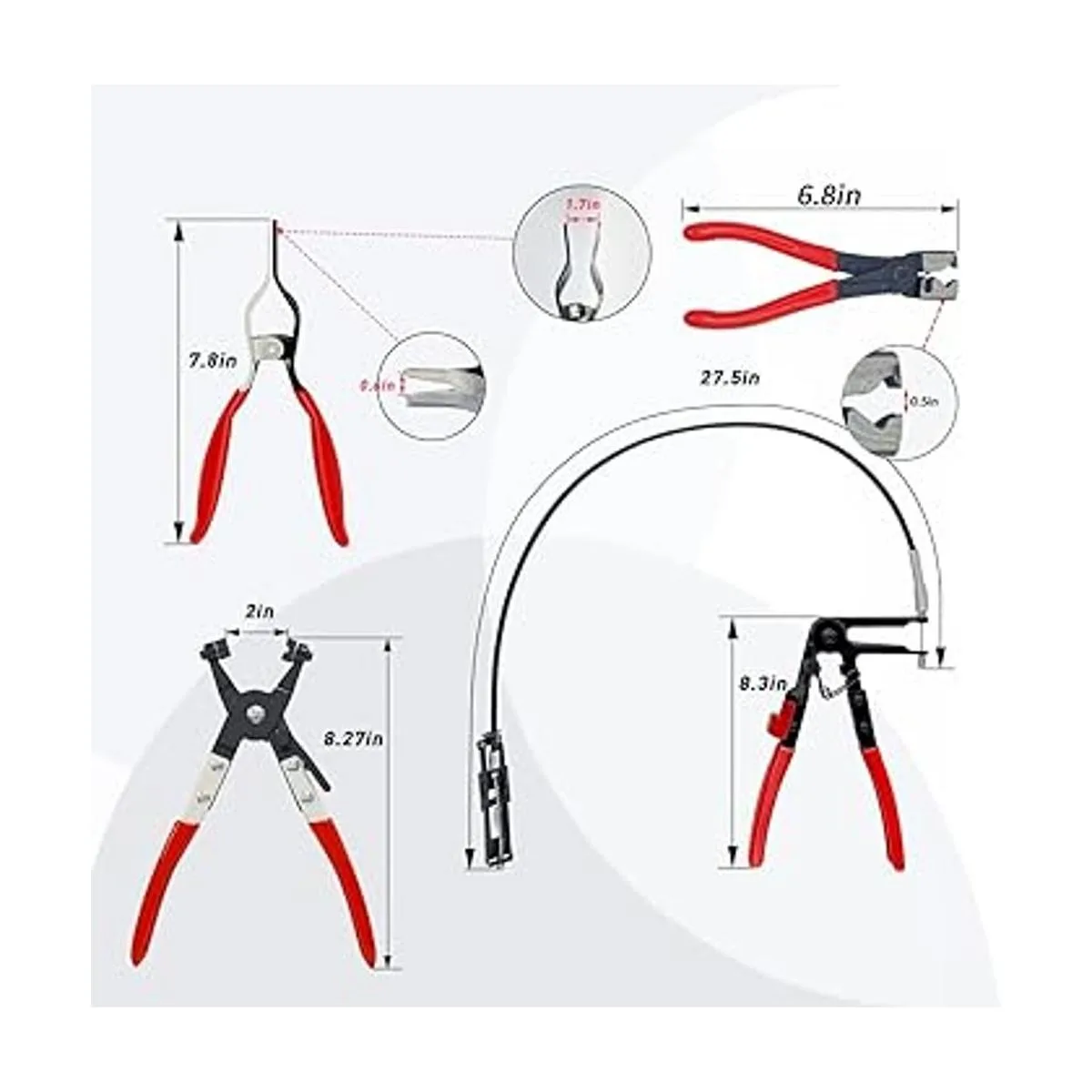 JANNO Juego de 3 alicates de abrazadera de manguera, kit de removedor de abrazadera de manguera, herramienta de abrazadera de manguera de agua de combustible, manguera de resorte de alambre de largo alcance para calentador de radiador de refrigerante automotriz 3 piezas