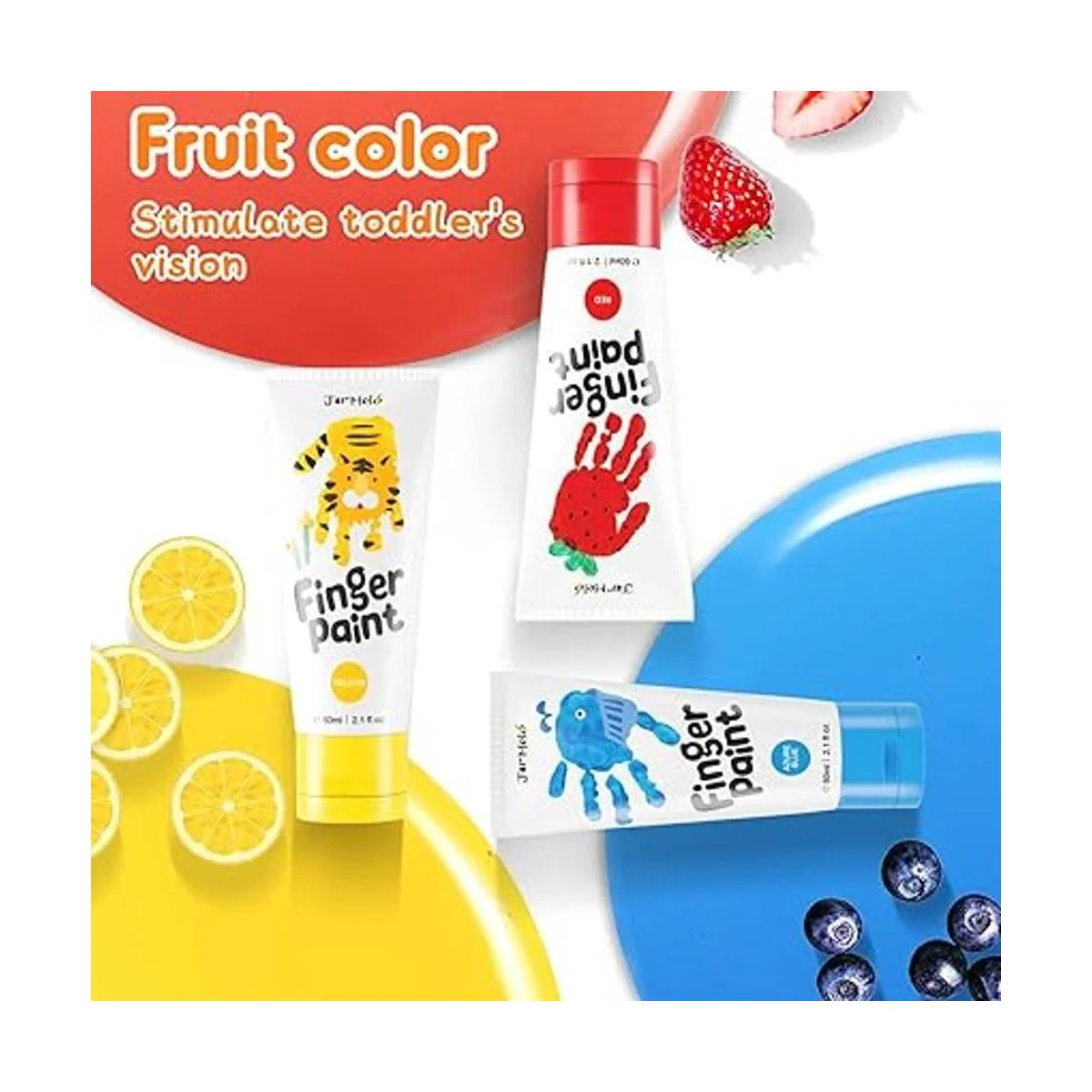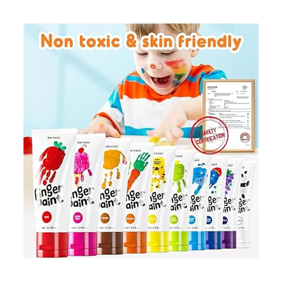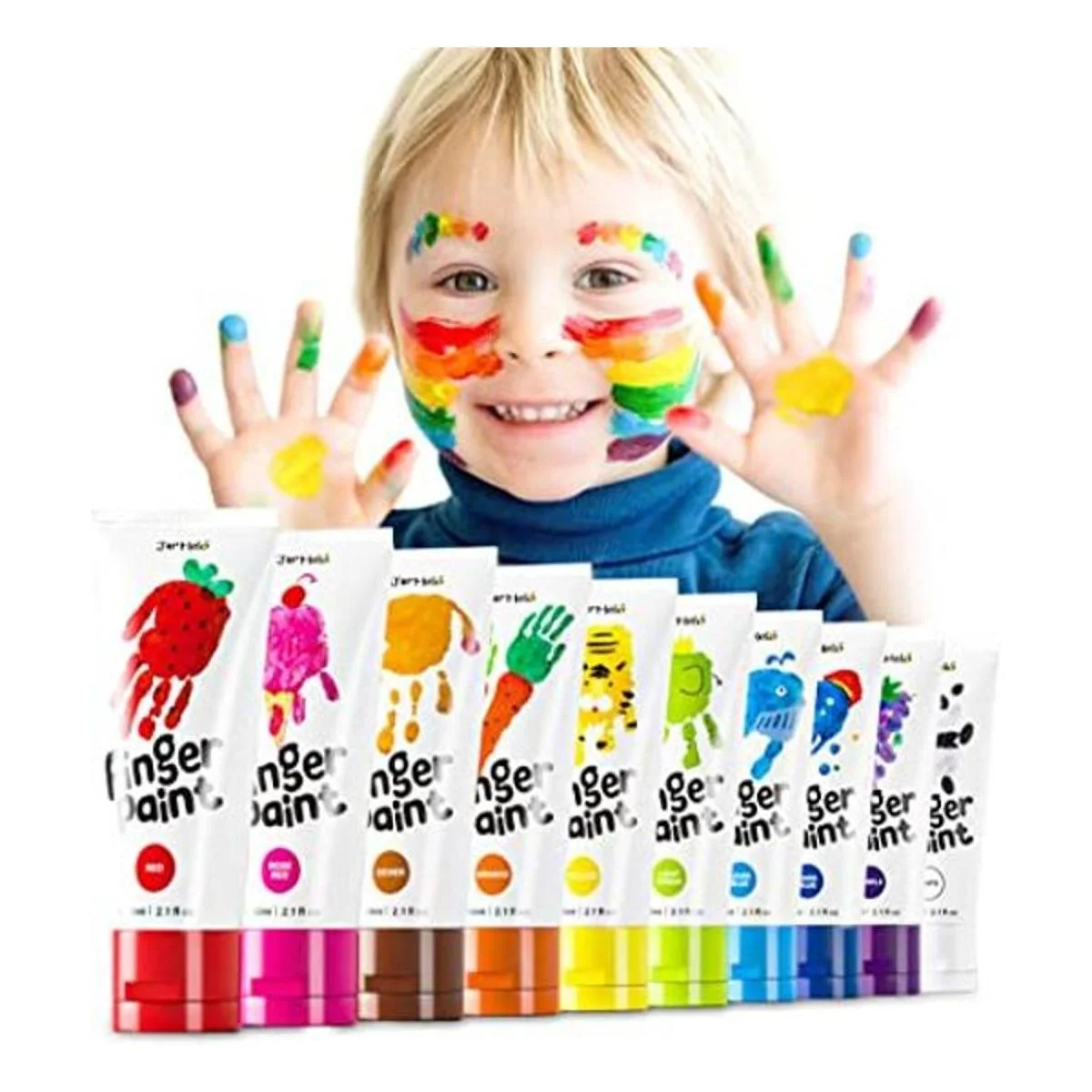 Jar Melo Juego de pinturas seguras para los dedos para niños pequeños, no tóxicas, lavables, suministros de pintura artística, regalo para bebés, niños a partir de 2, 3, 4, 5, 6, 10 colores surtidos 2.1 onzas líquidas