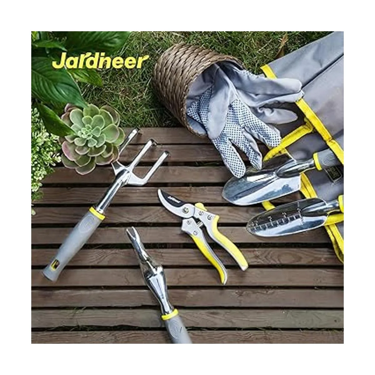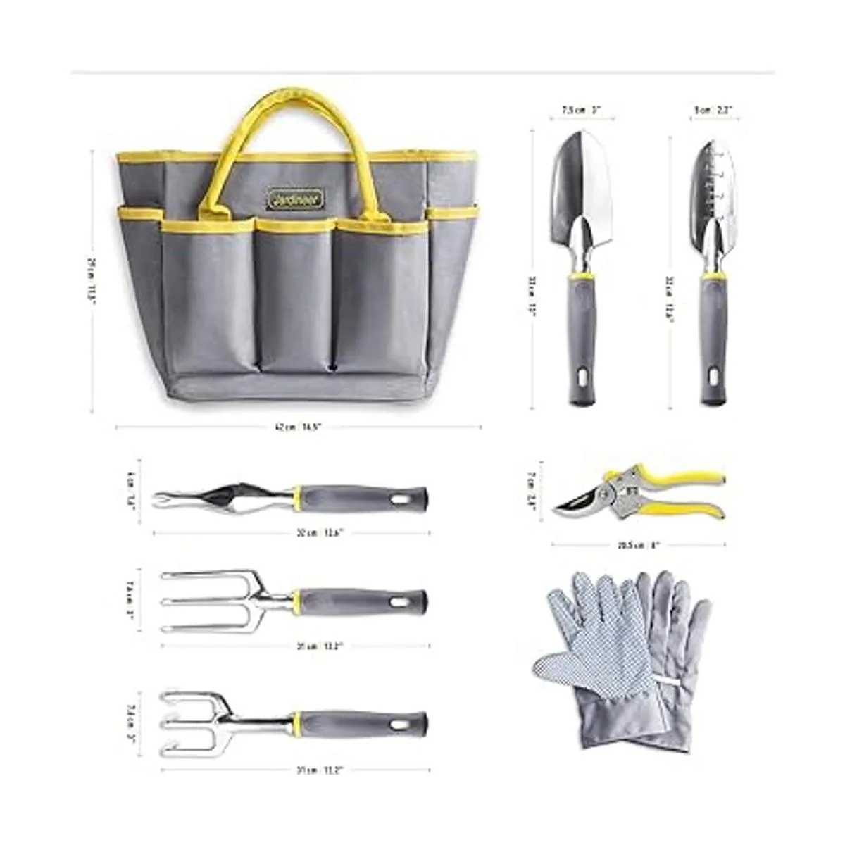 Jardineer Juego de herramientas de jardín, 8 piezas de herramientas de jardín resistentes con herramientas de mano al aire libre, guantes de jardín y bolsa de almacenamiento, herramientas de jardinería regalos para mujeres y hombres