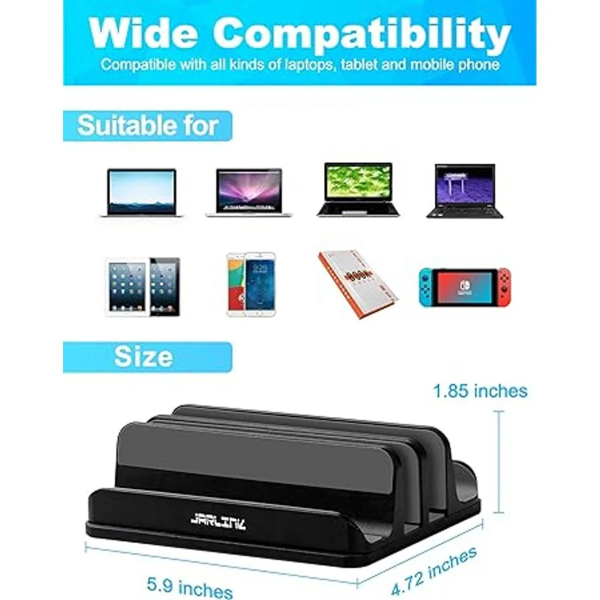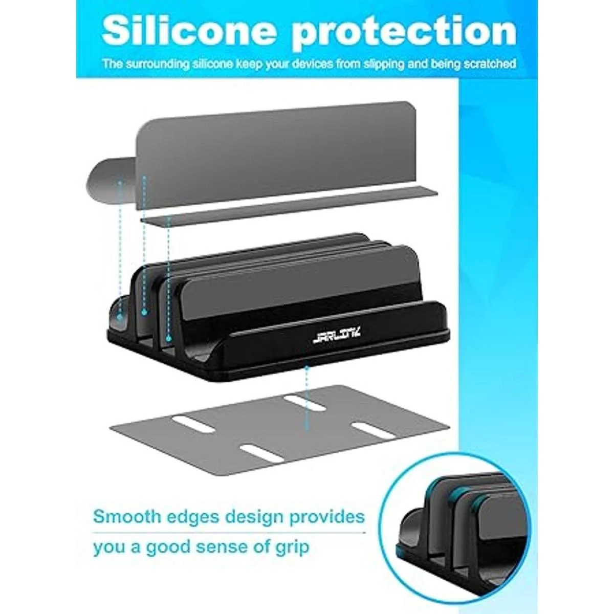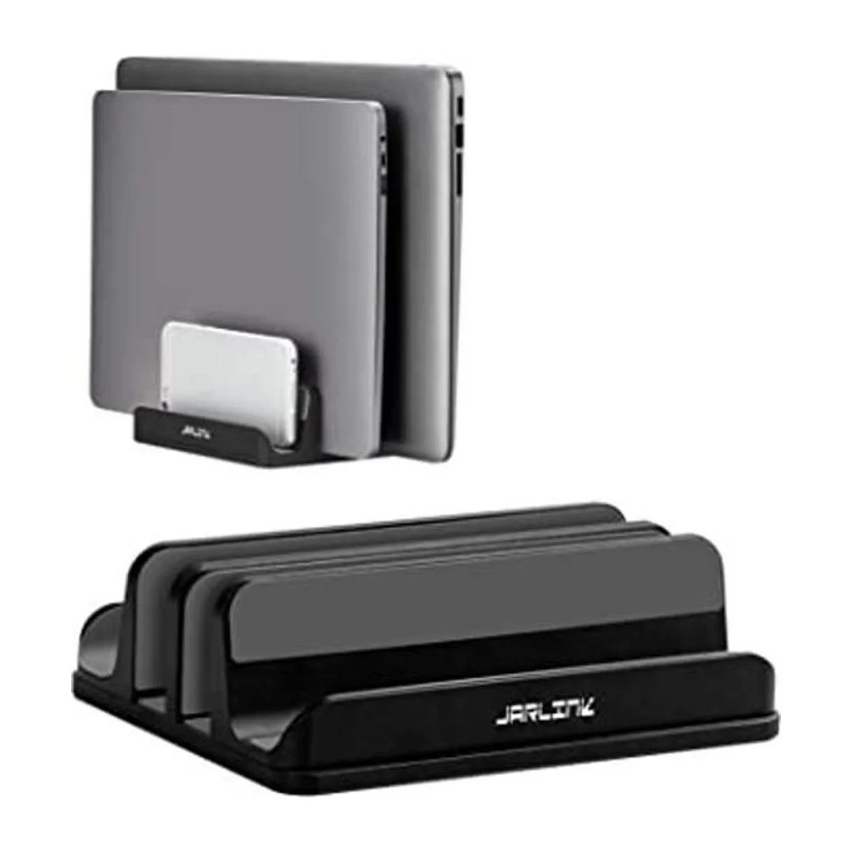 JARLINK Soporte vertical ajustable para laptop, soporte de escritorio ajustable para laptop con 2 ranuras hasta 17.3 pulgadas, compatible con todas las superficies MacBook ProAirMicrosoft, nuevo diseño negro