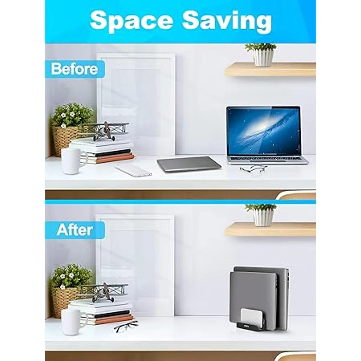 Ahorro de espacio: acuna tus dispositivos verticalmente, construye un espacio limpio y organizado para tu escritorio.