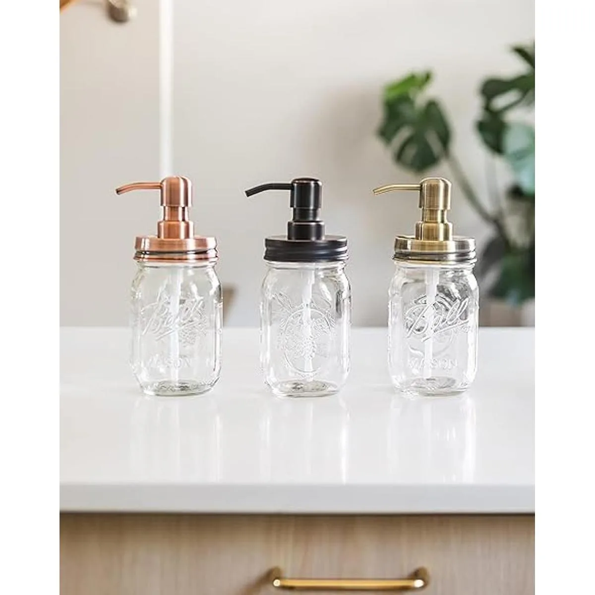 Incluye un tarro Mason de 16 onzas de tamaño pinta y dispensador de jabón de acero inoxidable chapado en cobre