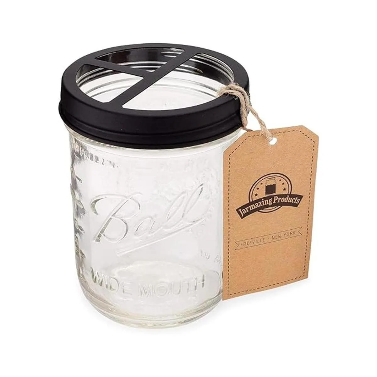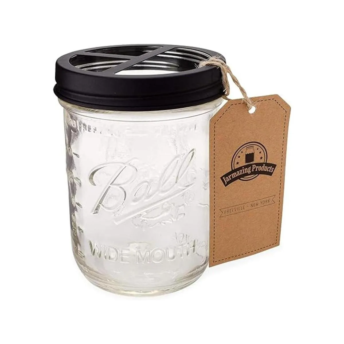 Jarmazing Products Mason Jar Soporte para cepillo de dientes, color negro, con tarro de bola de 16 onzas, hecho de acero inoxidable a prueba de óxido