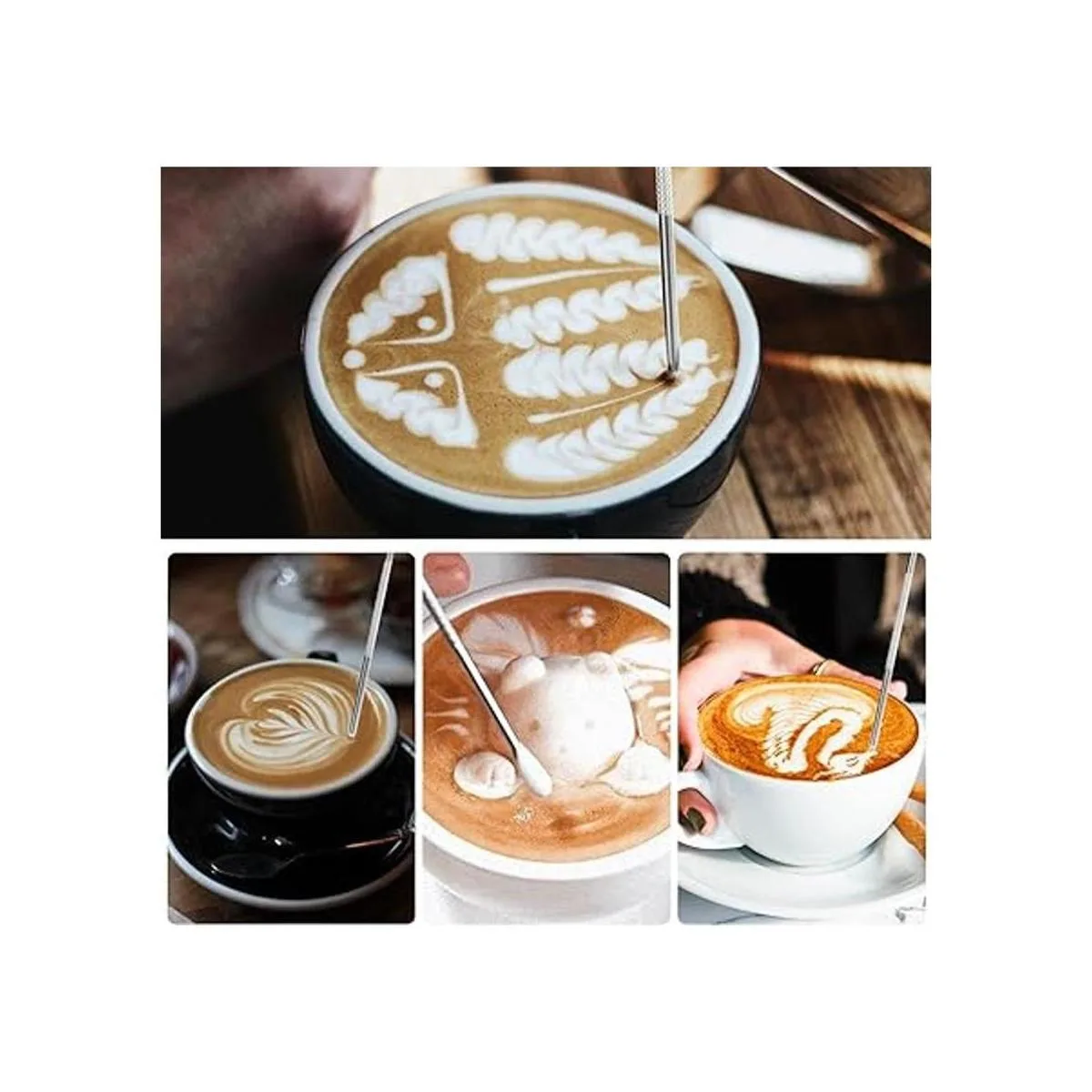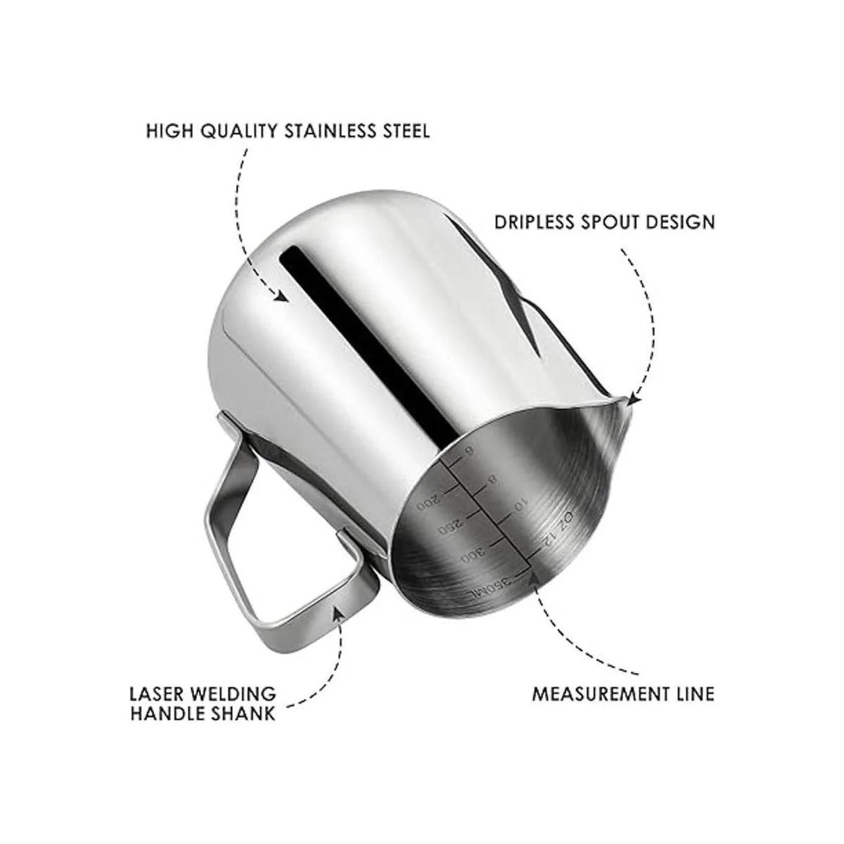 Jarra espumadora de leche, jarra de vapor de expreso de 12 onzas, accesorios para máquina de expreso, acero inoxidable, café con leche, capuchino, barista, jarra de vapor con bolígrafo decorativo Latte Art