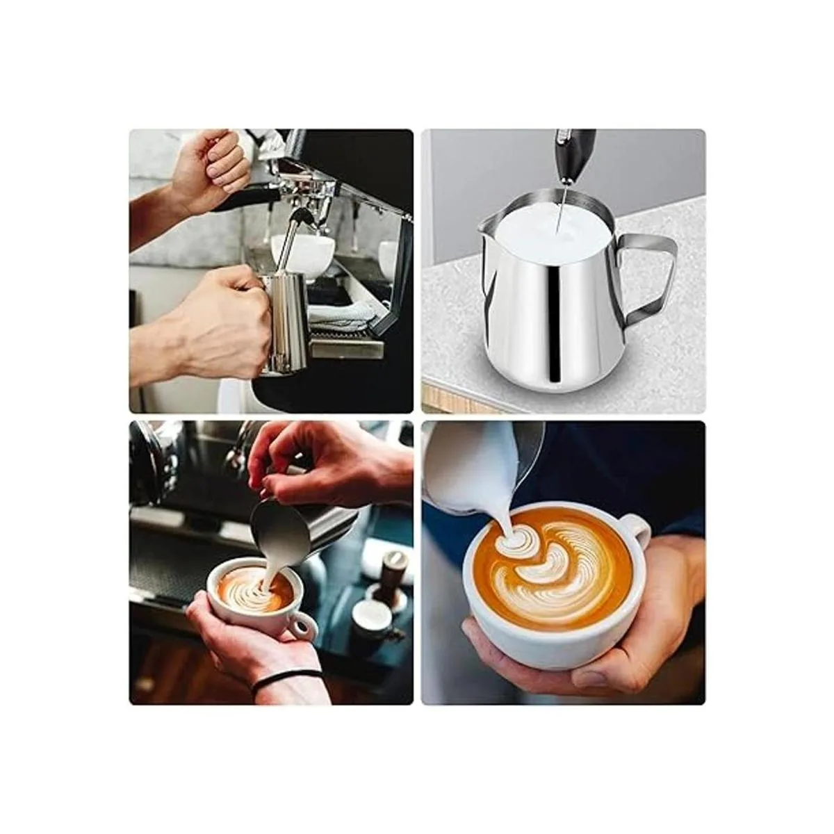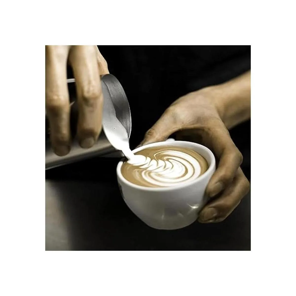 Diseño ergonómico: el diseño único de la boquilla estrecha es perfecto para verter líquidos. El mango no se calienta, te ayuda a controlar la fuerza y así centrarte en el arte del latte. La jarra de espuma tiene un aspecto hermoso y elegante.