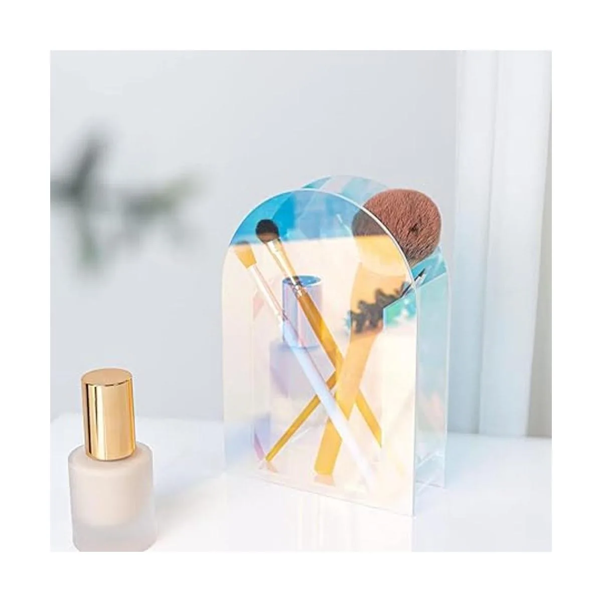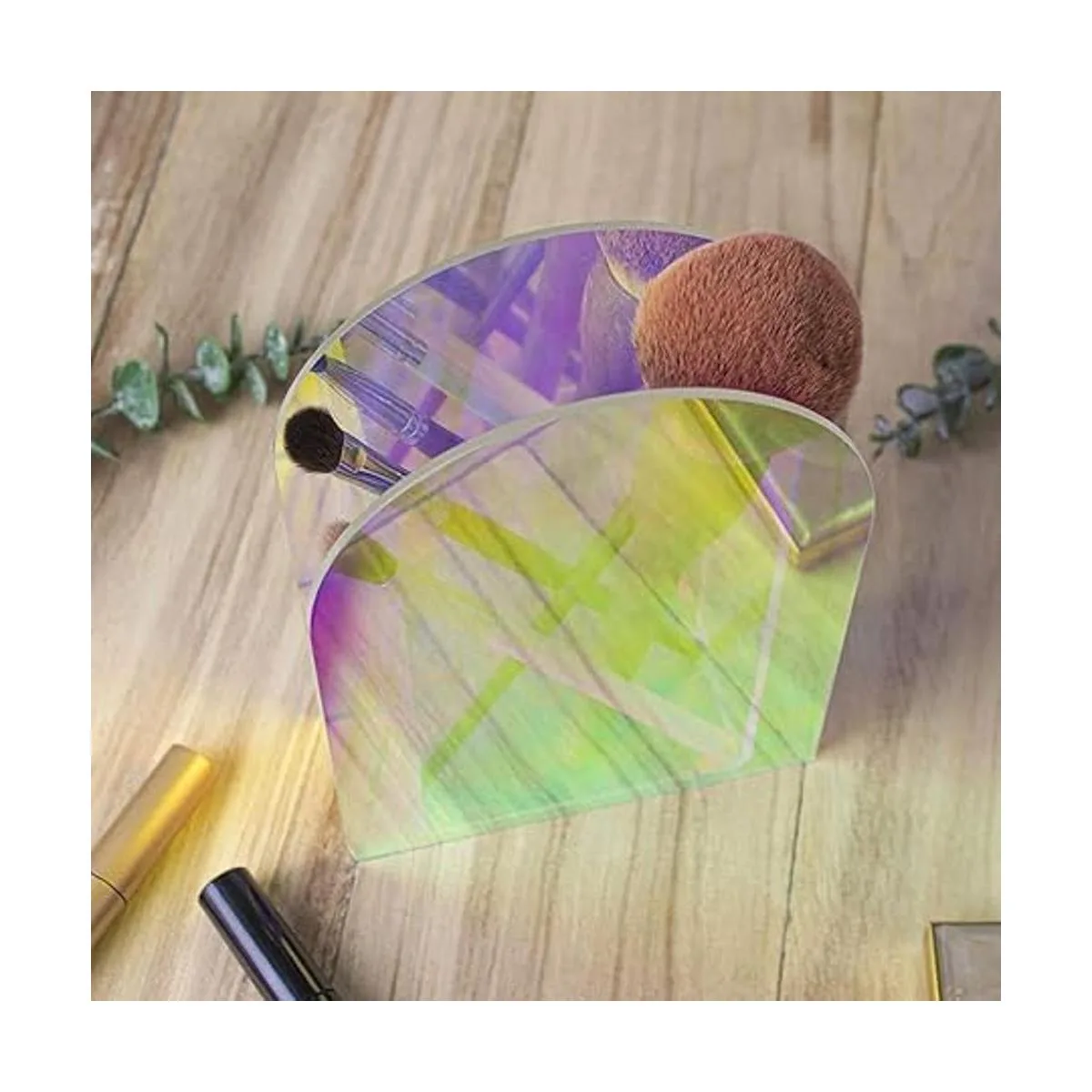 Jarrón acrílico iridiscente para flores artificiales, hojas de eucalipto falsas, decoración del hogar, mesa contemporánea, minimalista, geométrico, mini decoración, brochas de maquillaje, soporte organizador arco iris
