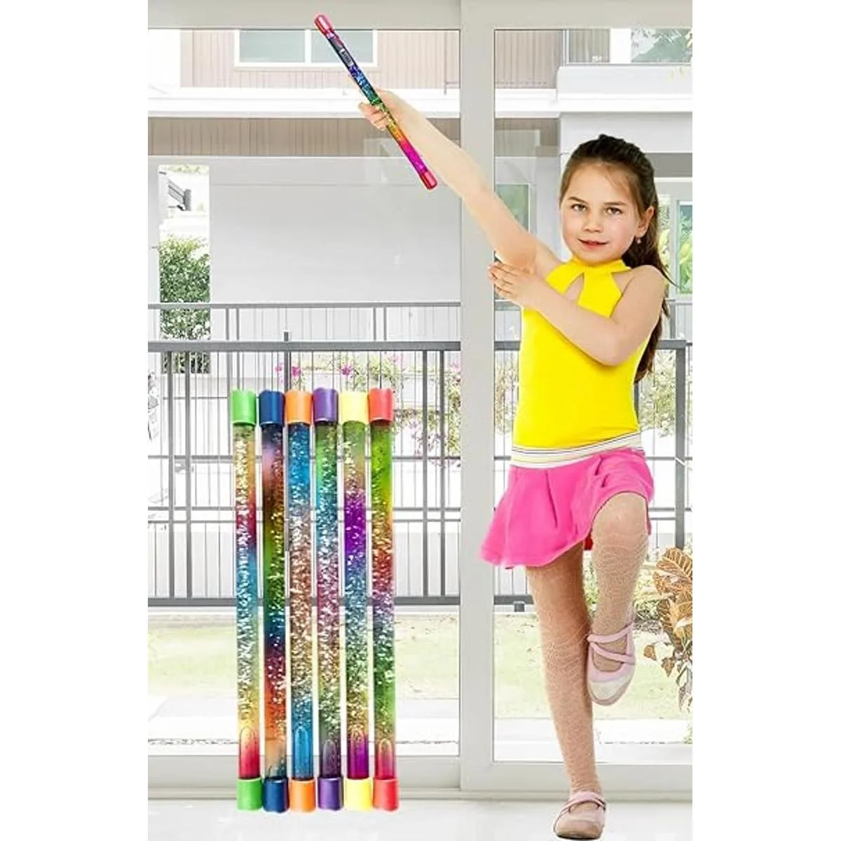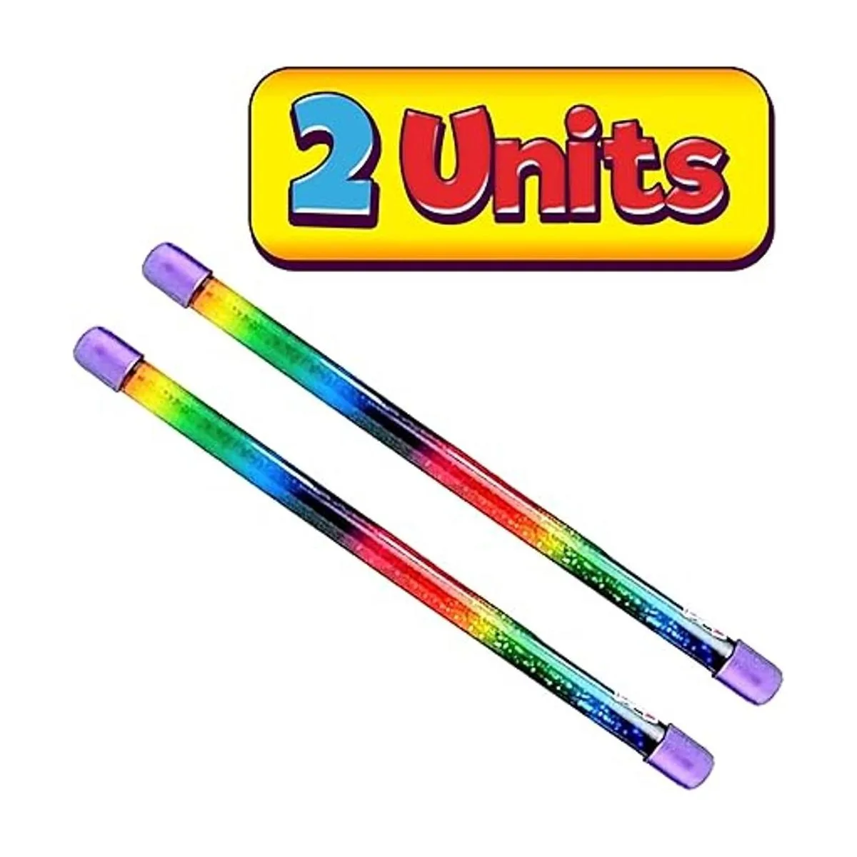 JARU Varita de bastón con purpurina 2 unidades mágicas de colores arcoíris, juguetes para niñas y niños, decoraciones de princesa, recuerdos de fiesta, porrista giratoria, más 1 calcomanía 20022s