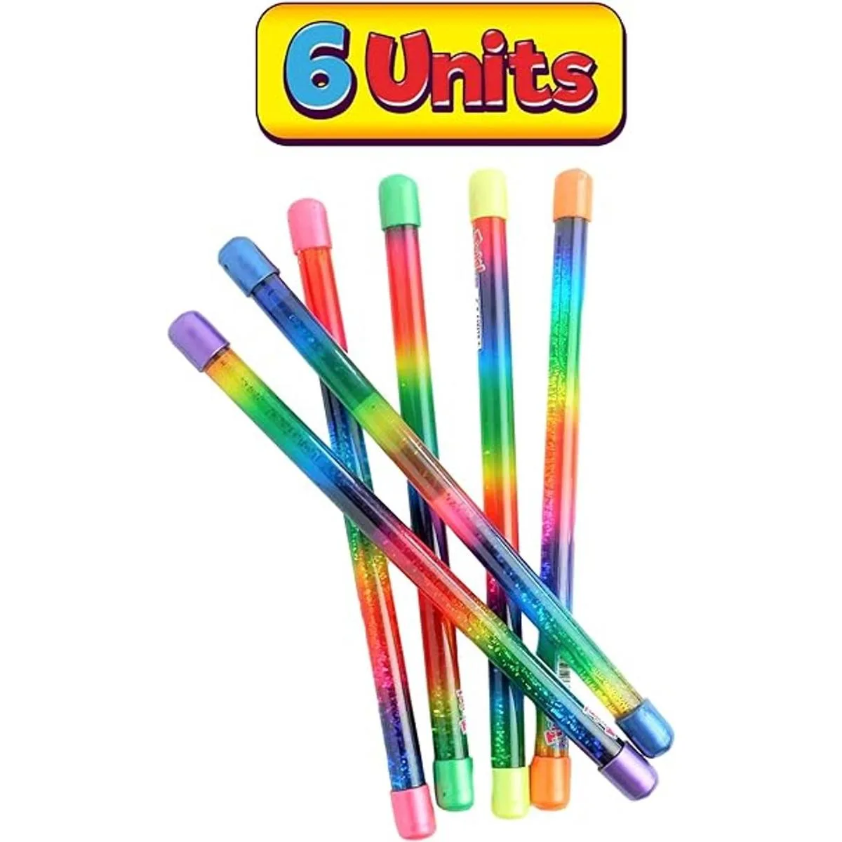 6 bastones de varita en espiral brillantes de colores arcoíris. Colores surtidos. Gran juguete sensorial.