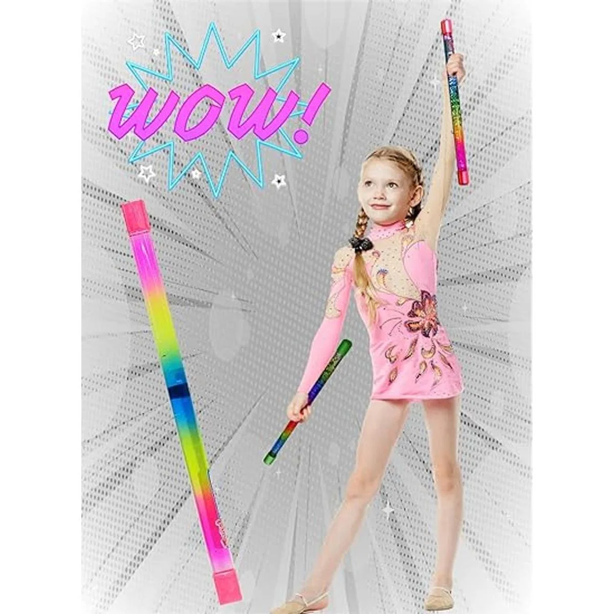 JARU Varita de bastón con purpurina 6 unidades de 12 pulgadas mágicas de colores arcoíris de hadas para niñas y niños, decoraciones de princesa, recuerdos de fiesta, porrista giratoria, bastón de baile. Más 1 bola inflable 20026p