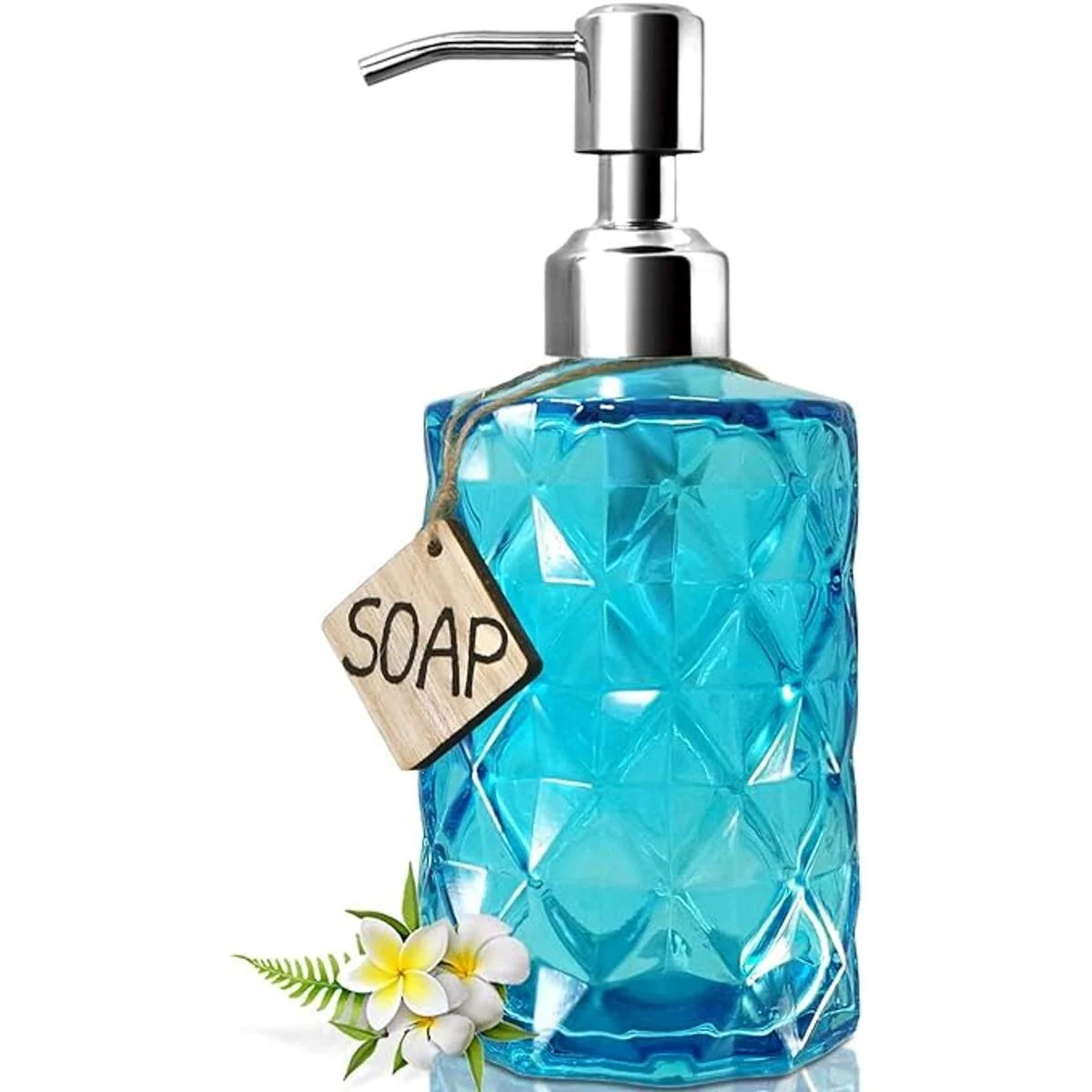 JASAI Diamond Design Dispensador de jabón con bomba de jabón de acero inoxidable 304 a prueba de óxido, dispensador de jabón de cocina de 12 onzas para baño, jabón de manos, jabón de platos azul claro