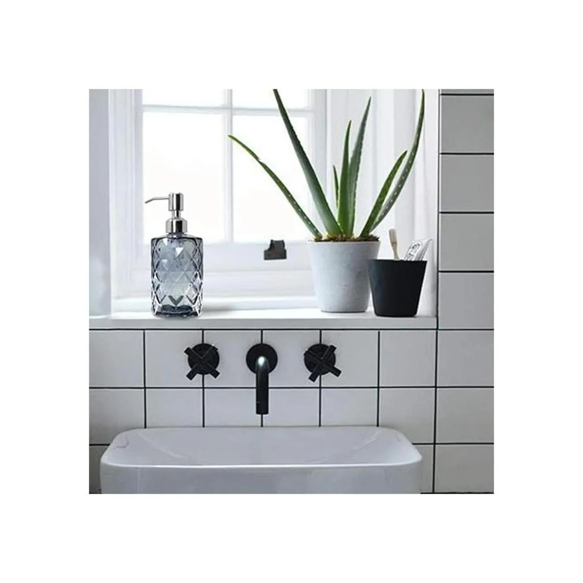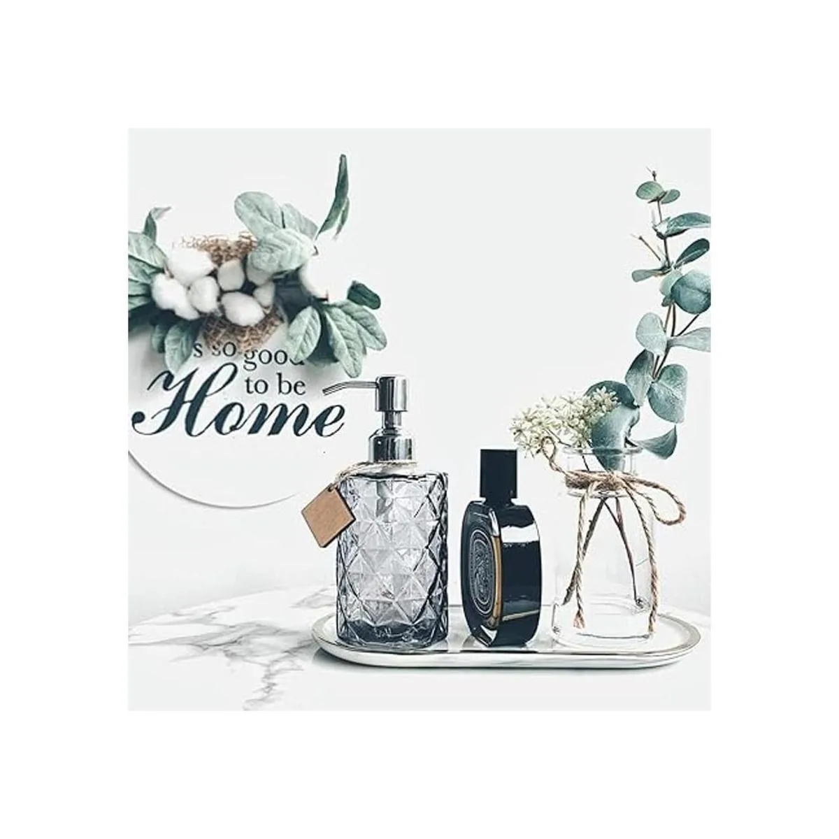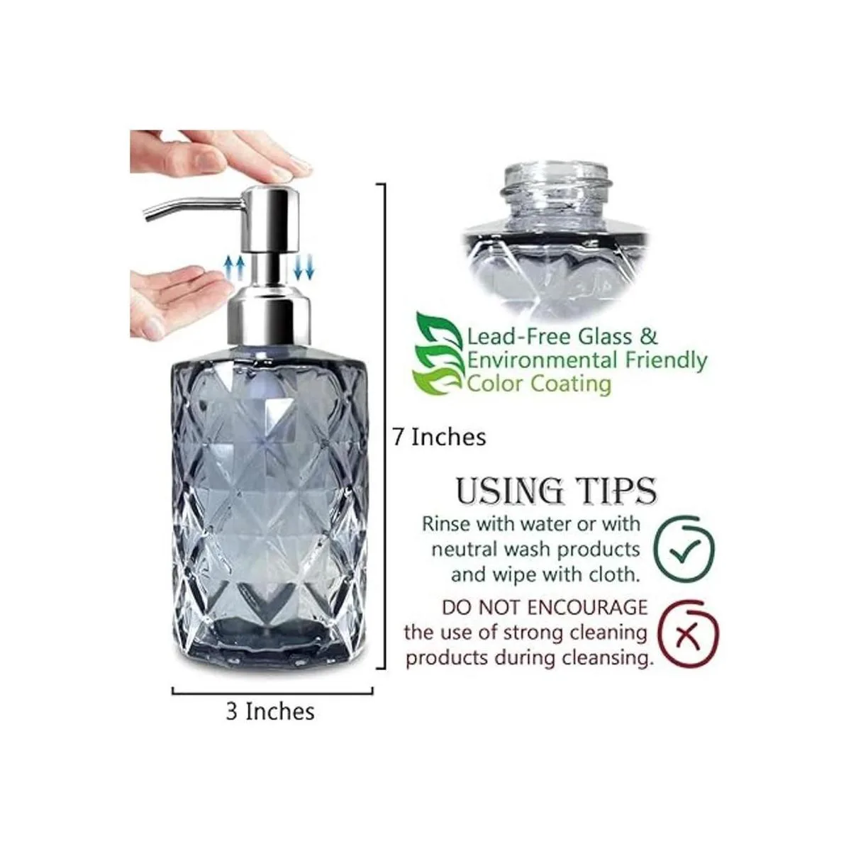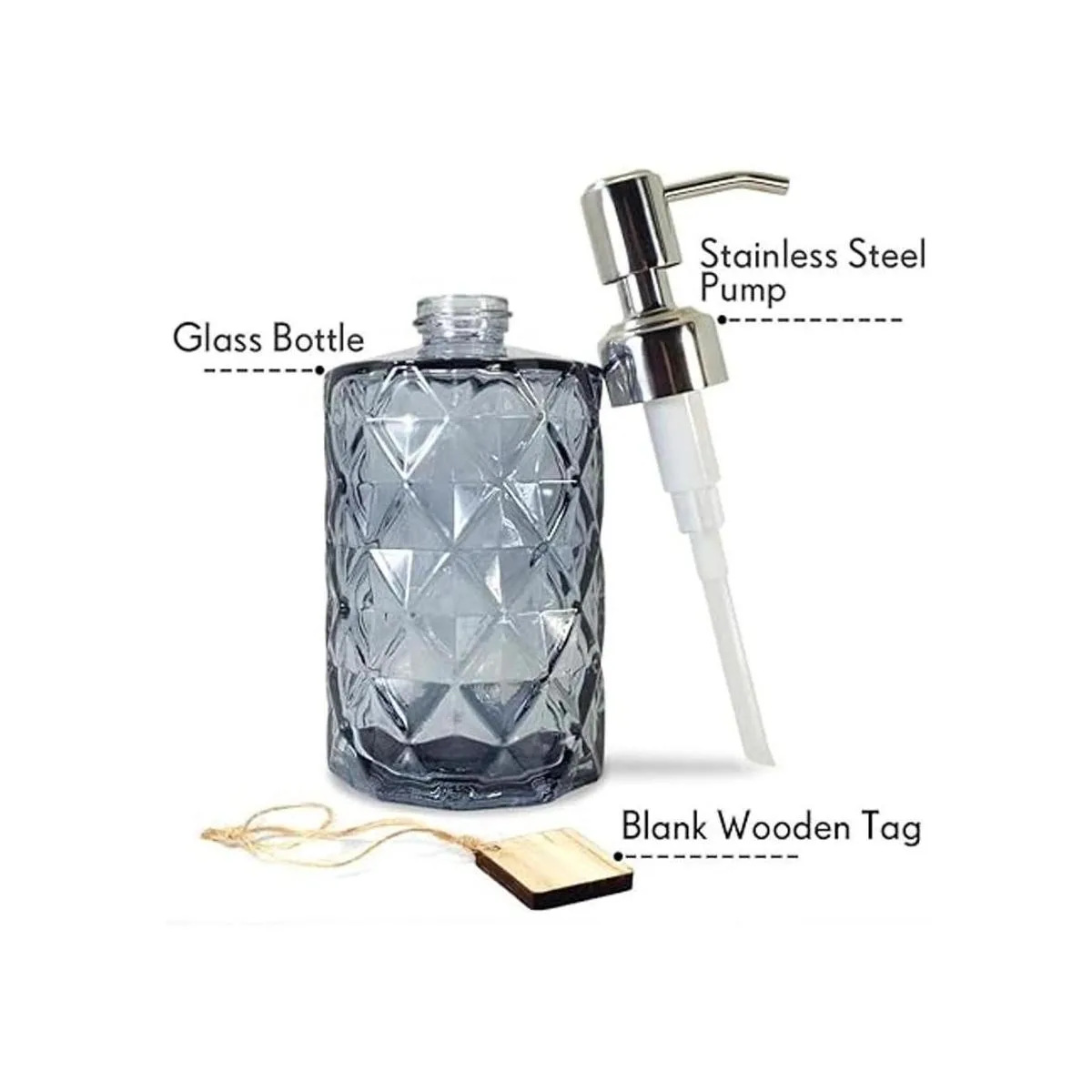 Elegante dispensador de jabón de vidrio gris con patrón geométrico, ideal para jabón, loción, jabón de manos, jabón de platos, etc.