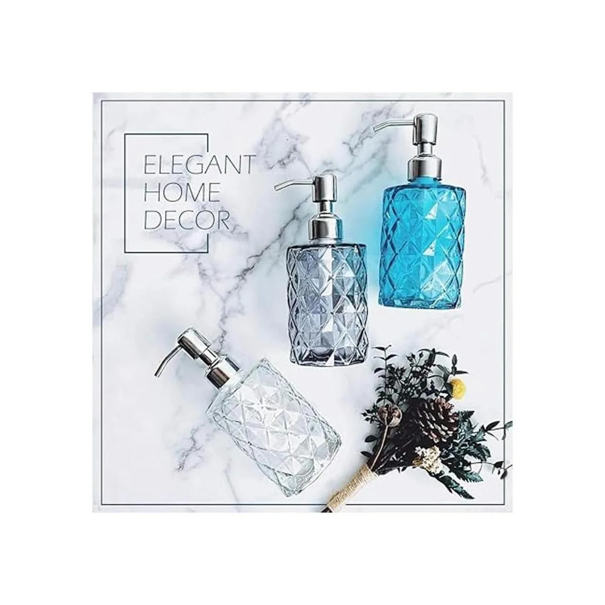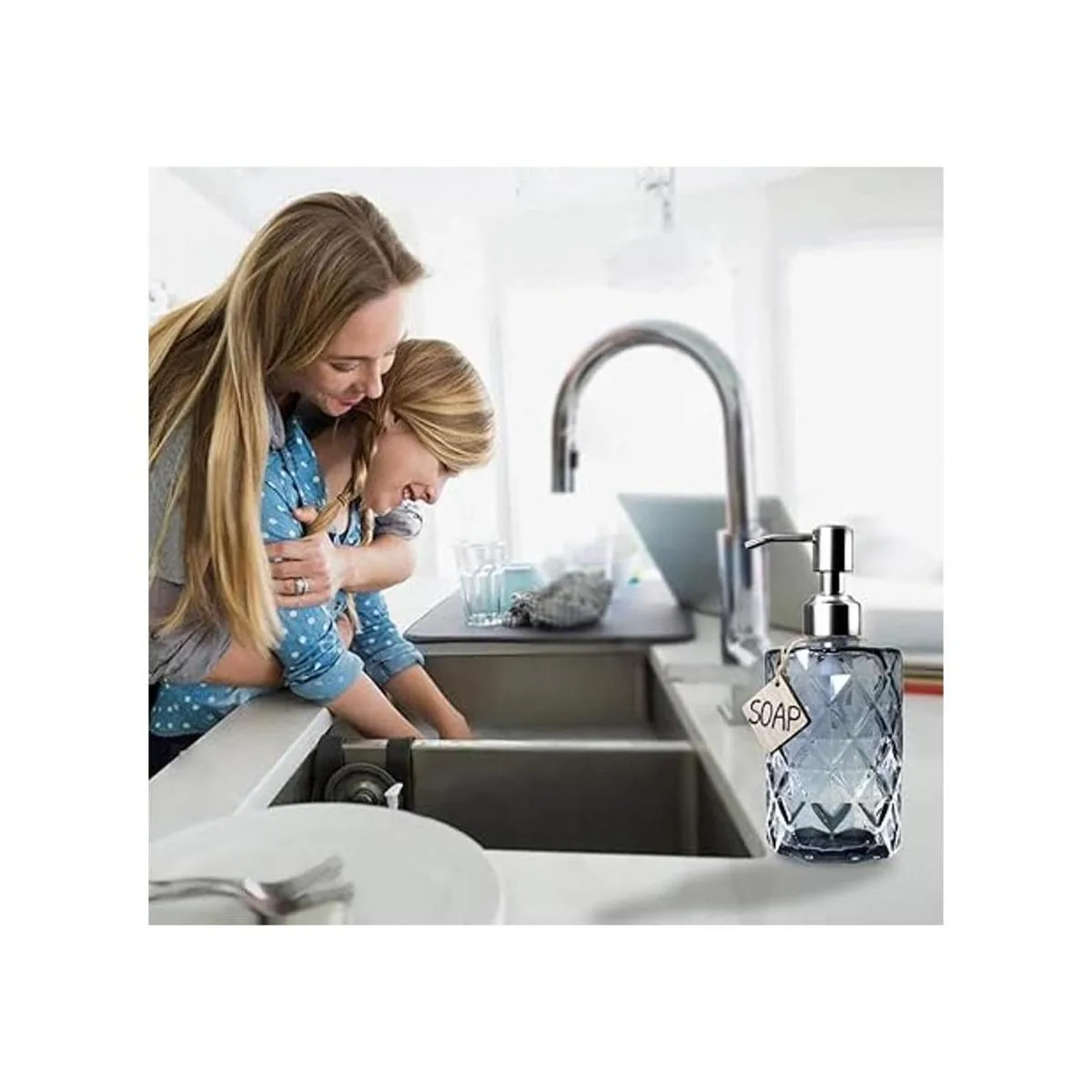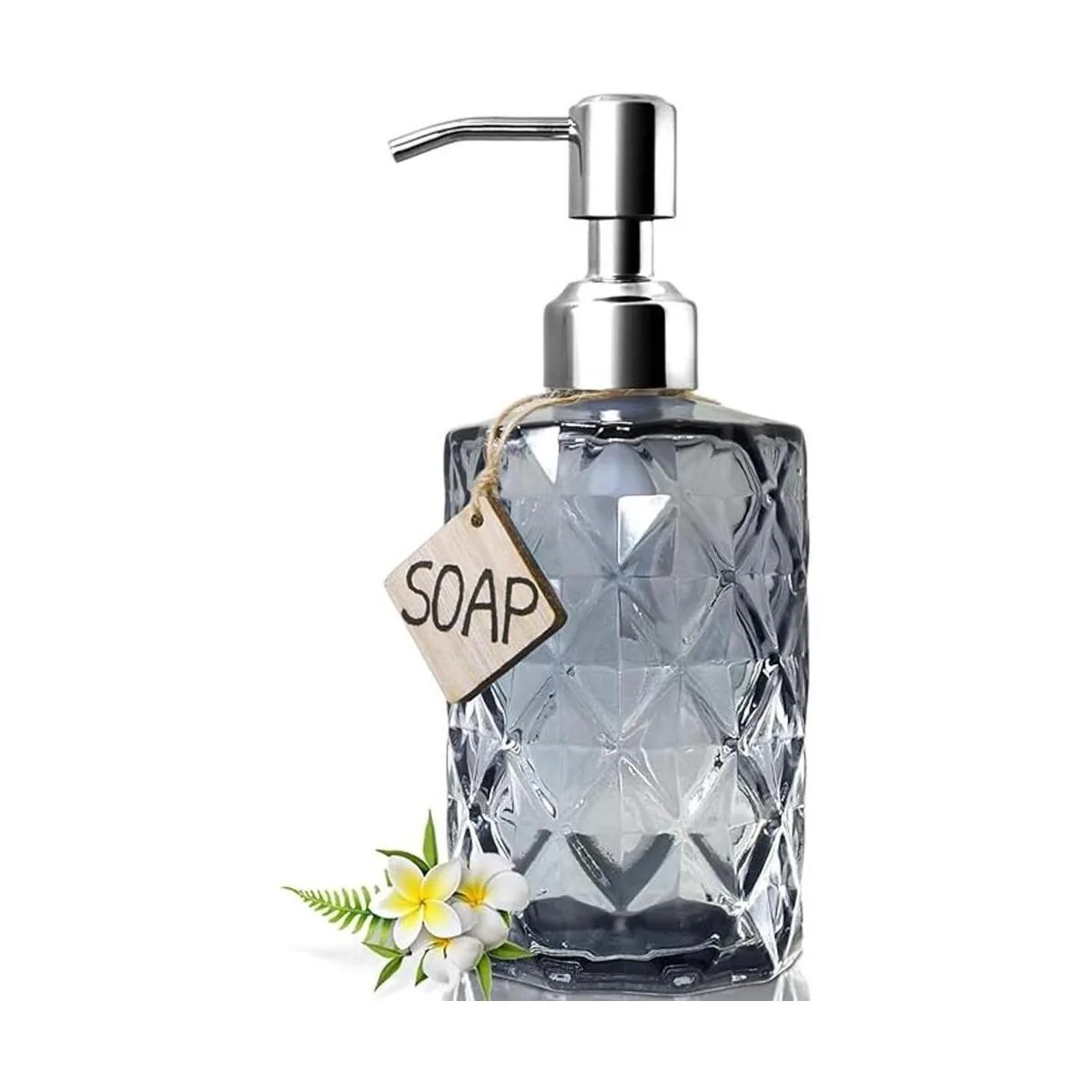JASAI Diamond Design Dispensador de jabón de vidrio con bomba de jabón de acero inoxidable 304 a prueba de óxido, dispensador de jabón de cocina de 12 onzas para baño, jabón de manos, jabón de platos gris
