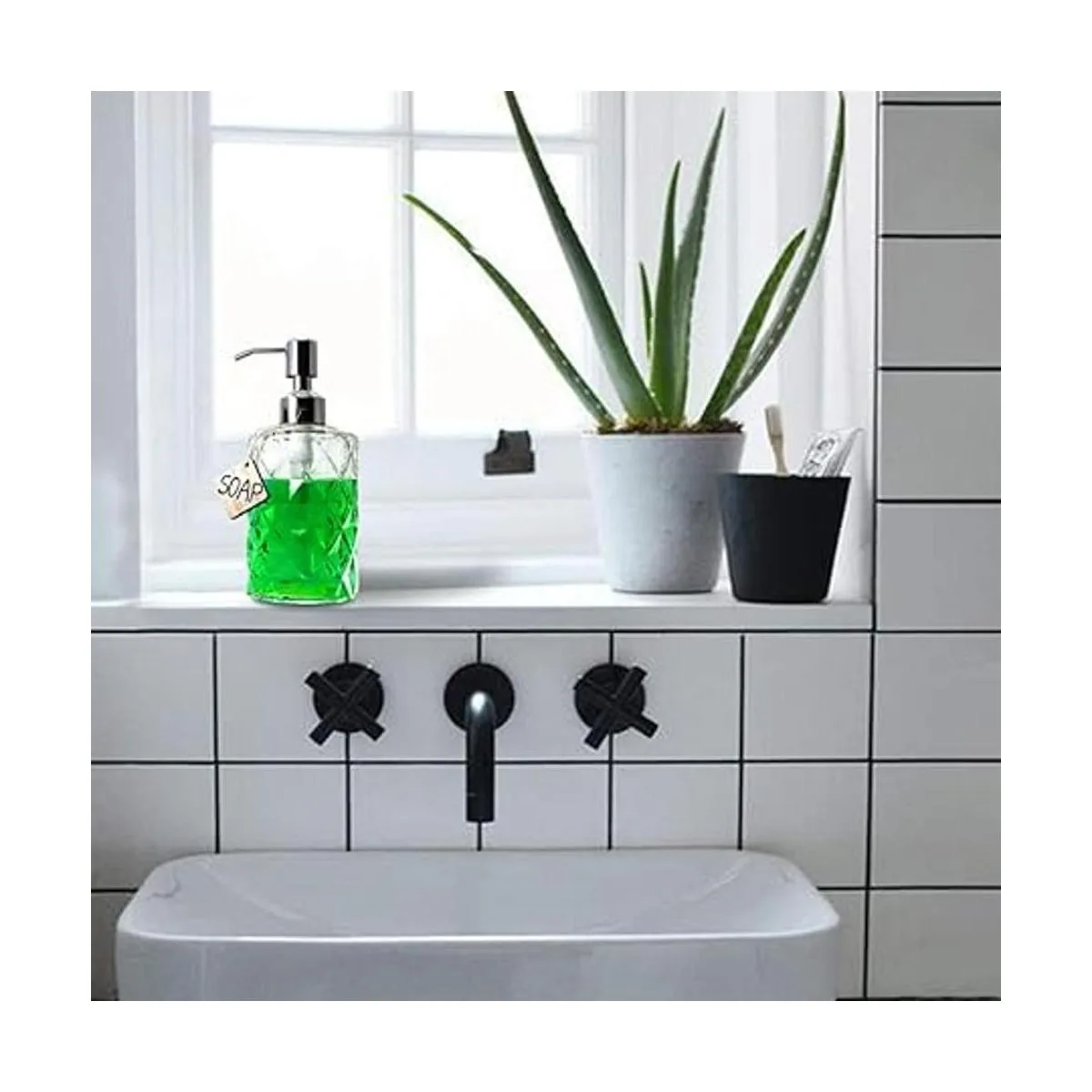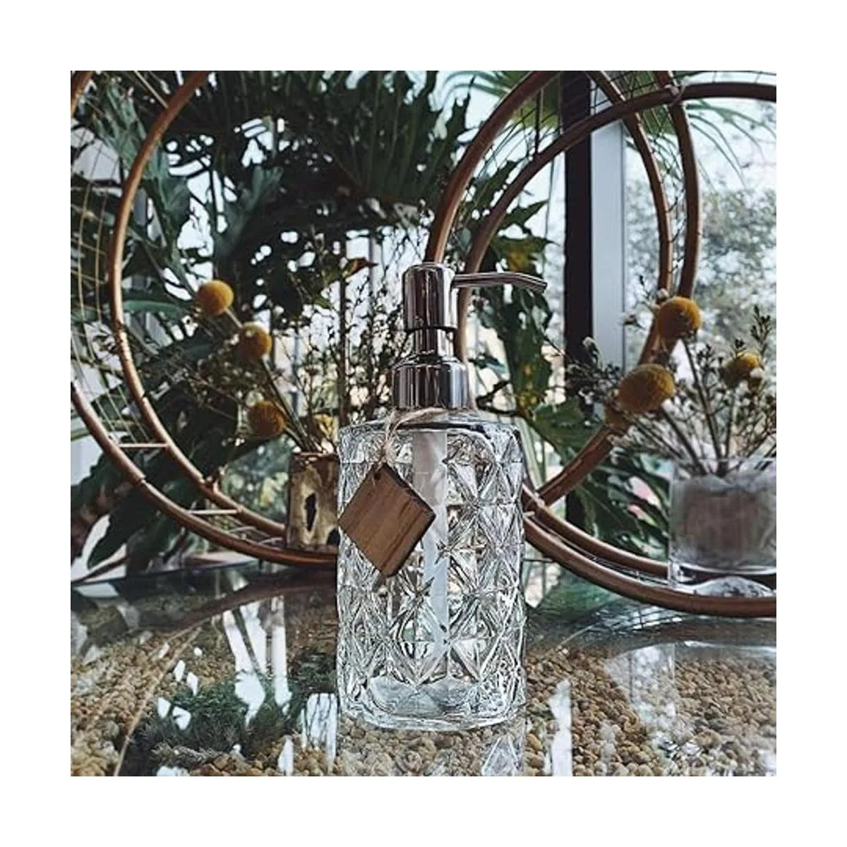 Dispensador de jabón de baño de cristal transparente con elegante patrón geométrico, ideal para jabón, jabón de manos, loción, etc.