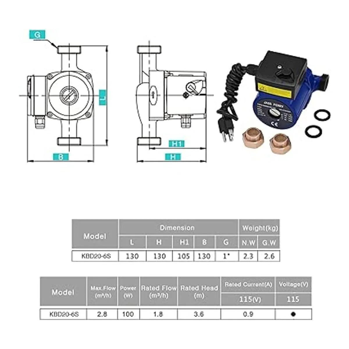 Fácil de instalar: la bomba de circulación de agua caliente NPT de 3/4 pulgadas viene completa con los accesorios de instalación, 2 adaptadores de cobre y 2 juntas. Simplemente conecta la bomba a la tubería con llave ajustable universal.