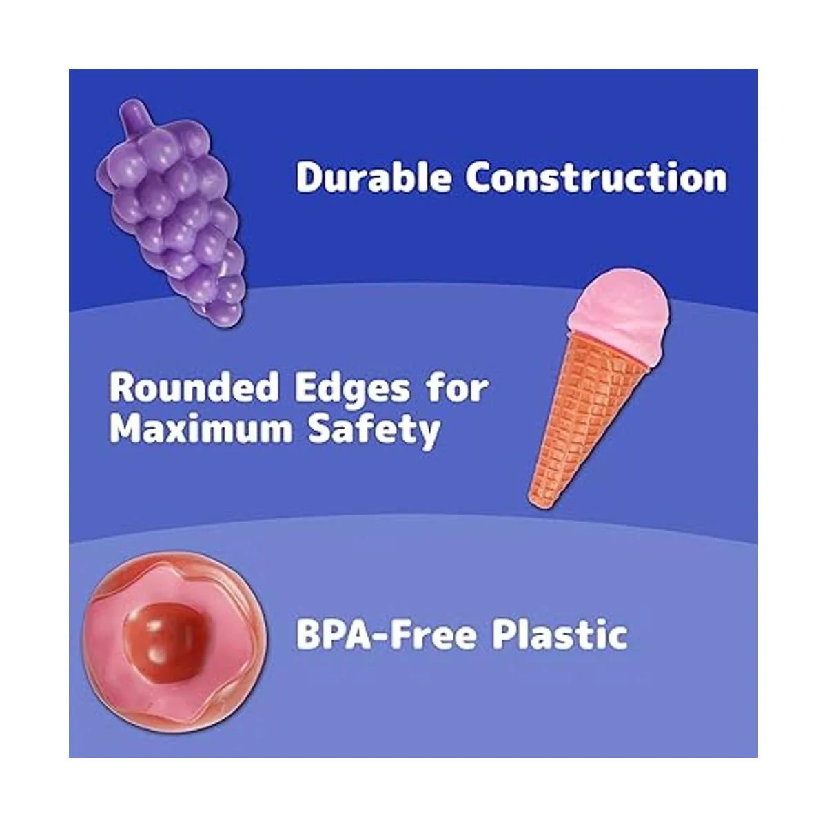 Construcción duradera. A diferencia de productos similares de la competencia, cada pieza está fabricada por expertos con plástico sin BPA, no cartón que se rompa y se derrame fácilmente. Además de no tener que preocuparse por la rotura de los juguetes, el material también es fácil de limpiar si es necesario.