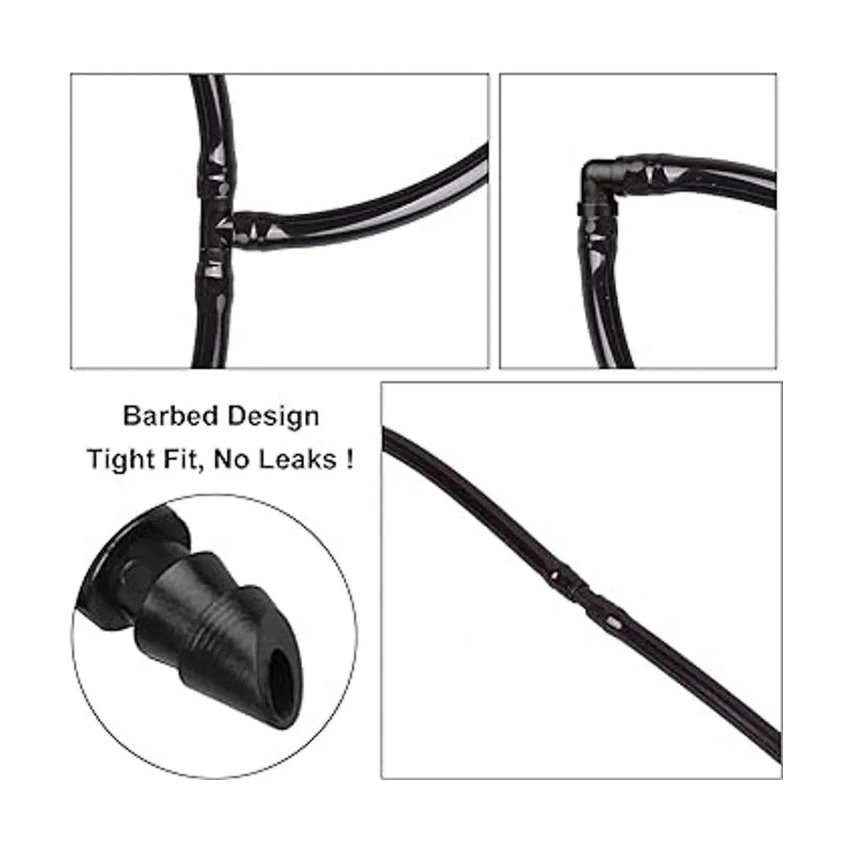 Amplias aplicaciones: todos los conectores de tubería y goteo están hechos de material plástico ABS de alta calidad y resistente a los rayos UV para garantizar una vida útil más duradera. Este sistema de riego es ideal para plantas en macetas, invernaderos, césped, patios, verduras, camas de flores