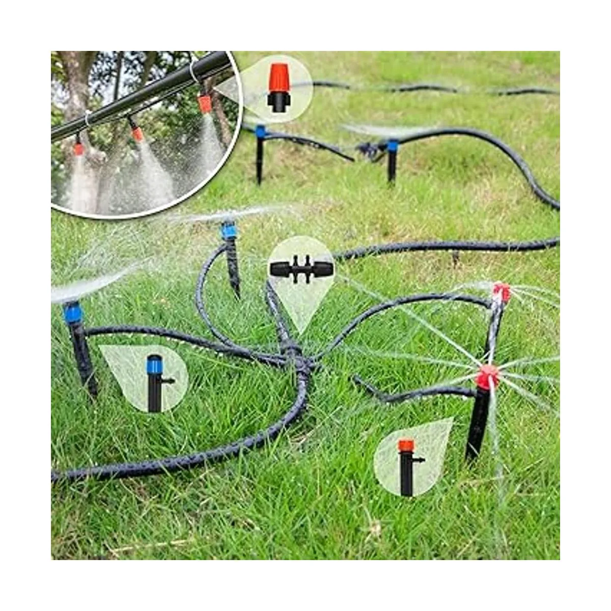 Kit completo de sistema de aspersor: acoplador de rosca hembra de 2 x 3/4 pulgadas, tubo de distribución de 33 pies 5/16 pulgadas 0.315 in ID tubo de distribución de 10 emisores de goteo, 12 corrientes emisoras de goteo, 3 tipos de acopladores de tubos de 5/16 pulgadas a 1/4 pulgadas 8 en total, 200 en Boquillas, 20 camisetas de boquilla, 20 camisetas de púas y enchufe 20 extremos, 1 cinta de teflón. Suficientes accesorios de goteo que te hacen más fácil hacer tu sistema de riego, personalizarlo para adaptarse a tu diseño específico de paisaje o jardín.