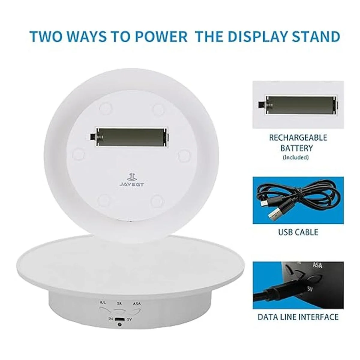 JAYEGT Soporte de exhibición giratorio motorizado, carga de 7.87 pulgadas17.6 libras, tocadiscos giratorio eléctrico de 360 grados para productos de fotografía, joyas, modelo 3D, con fondos de 5 colores, color blanco