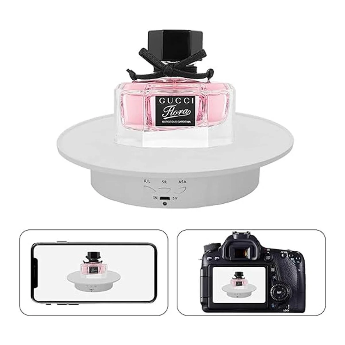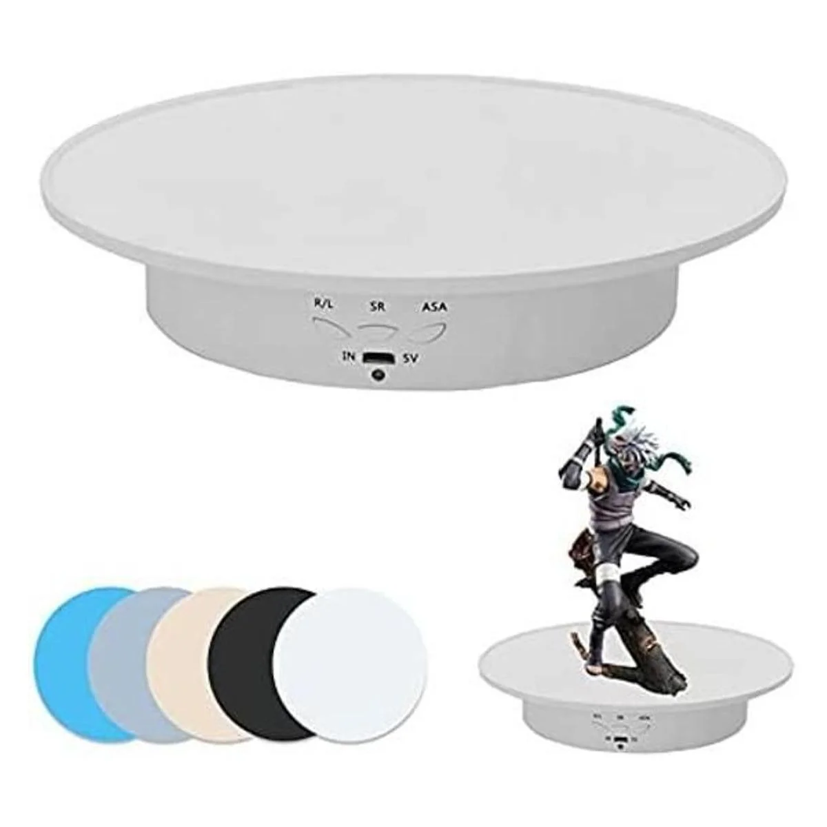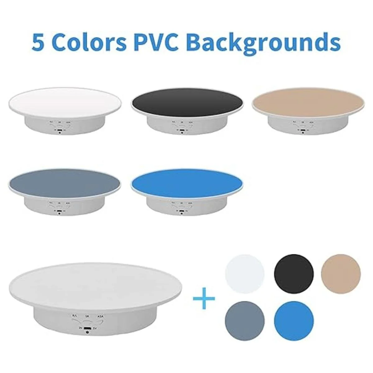 Fondos de 5 colores, el tocadiscos de fotografía ofrece una buena estabilidad y capacidad de carga. es perfecto para mostrar 360 grados o vender productos en tu video en vivo.