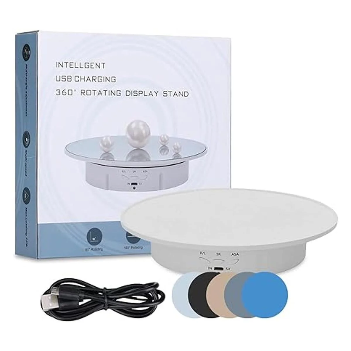 JAYEGT Soporte de exhibición giratorio motorizado, carga de 7.87 pulgadas/17.6 libras, tocadiscos giratorio eléctrico de 360 grados para productos de fotografía, joyas, modelo 3D, con fondos de 5 colores, color blanco
