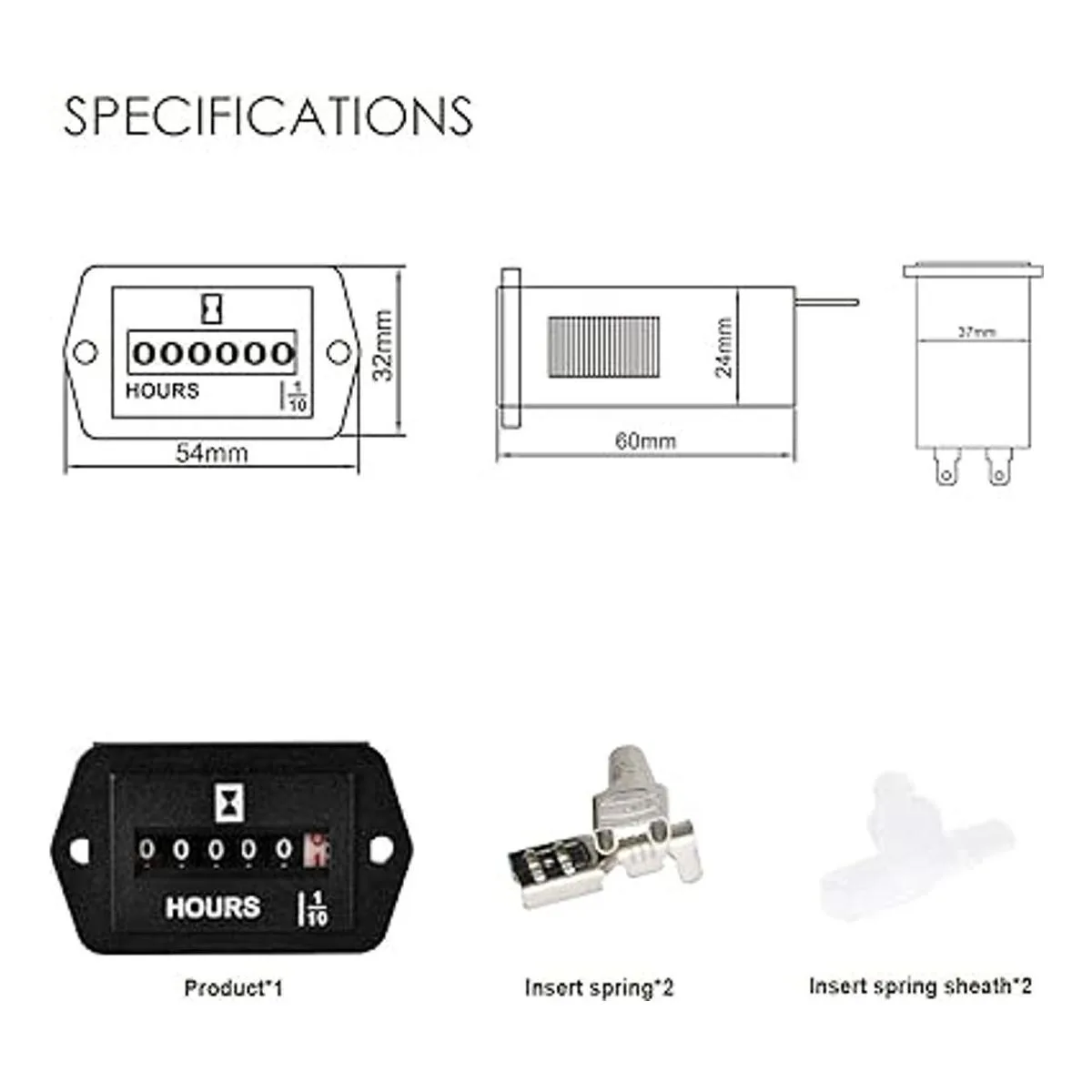 Jayron JRHM002 Medidor de hora de mecánica para CC 650 V, tales como elevadores de horquillas, carros de golf, equipo de cuidado del suelo y cualquier otro equipo alimentado por batería