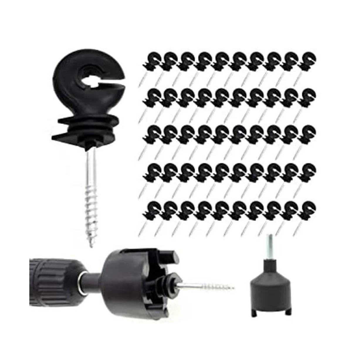 JBT 100 piezas aislador eléctrico cerca aislador atornillado anillo poste de madera poste aislador y 1 unids herramienta de enchufe aislante libre negro