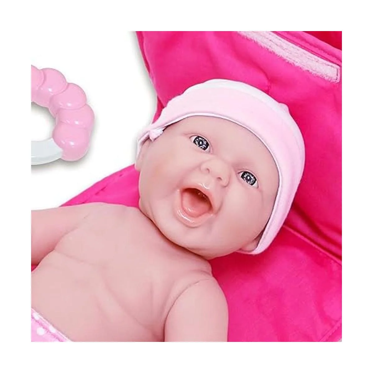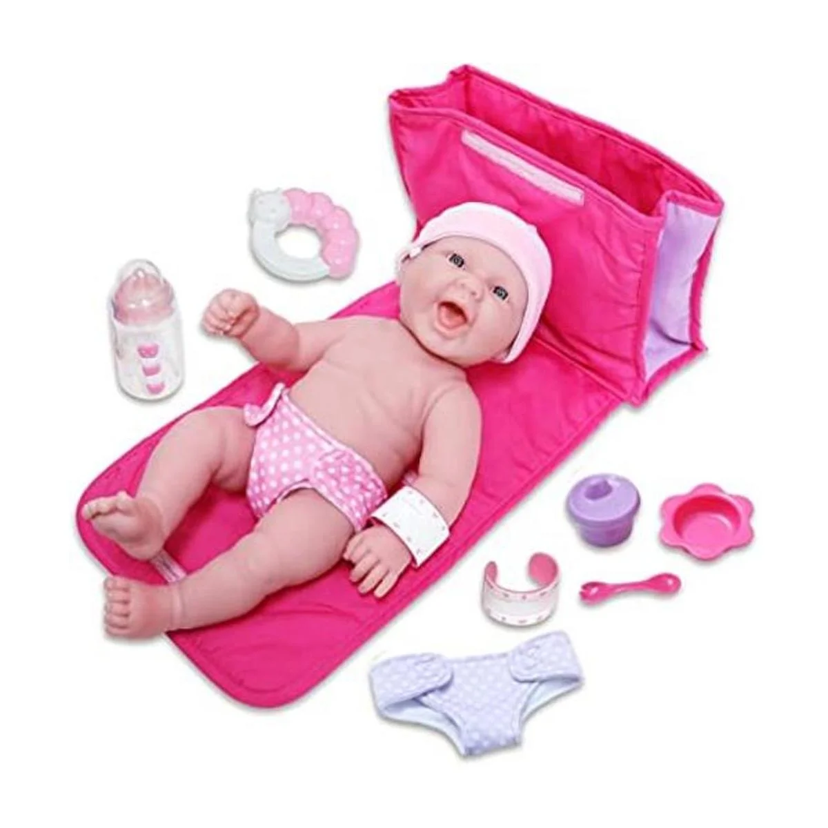 JC Toys La Newborn Juego de regalo de 10 piezas de bolsa de pañales de lujo Feat. Muñeca de bebé recién nacido sonriente realista de 13 pulgadas Todo el vinilo Lavable A partir de 2 años 18332, rosa